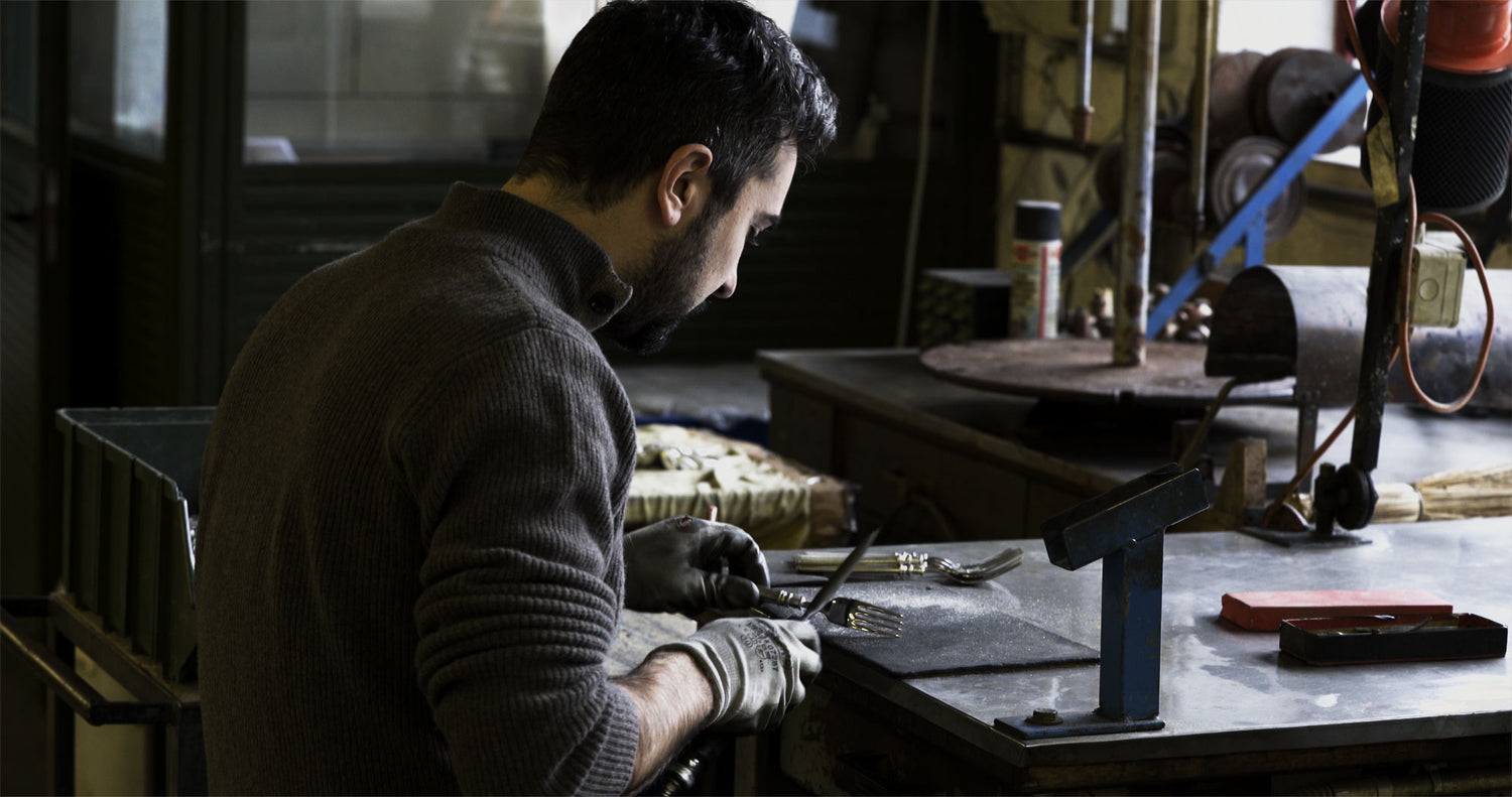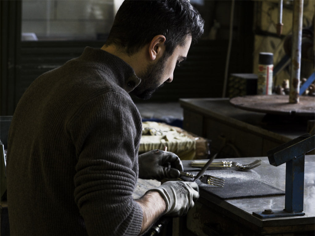 Take a look inside one of our workshops in Northern Italy as we highlight — in photos and words — the craftsmanship behind every piece of our Lucia flatware. We often take for granted the everyday tools used at the dining table. Each piece of Lucia flatware consists of two parts: a stainless steel working end and a beautiful pewter handle. In the photographs below, you’ll see how these pieces are joined together and finished by hand. The results are a perfect example of how MATCH combines classic design, modern technology, and the skilled hands of Italian artisans.
