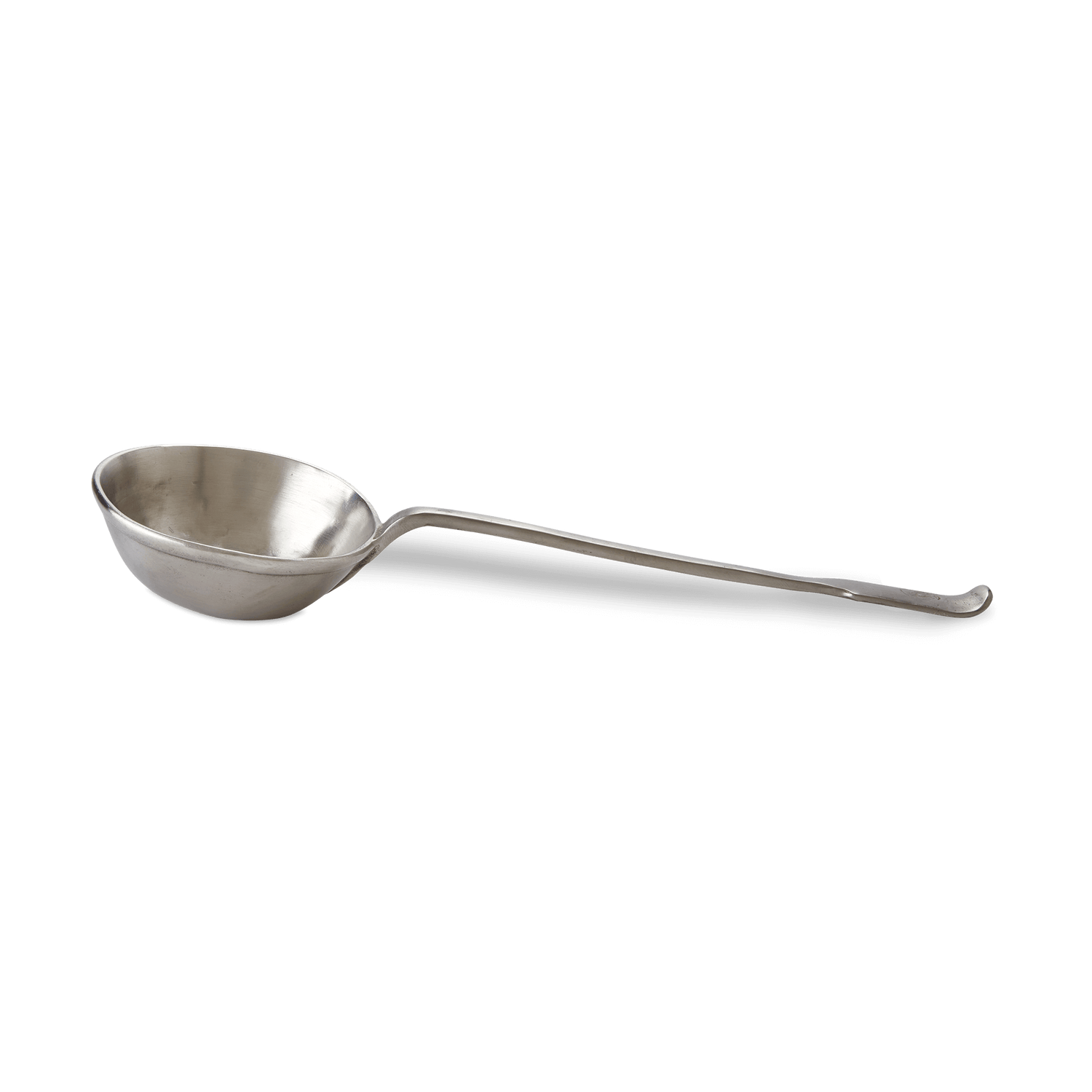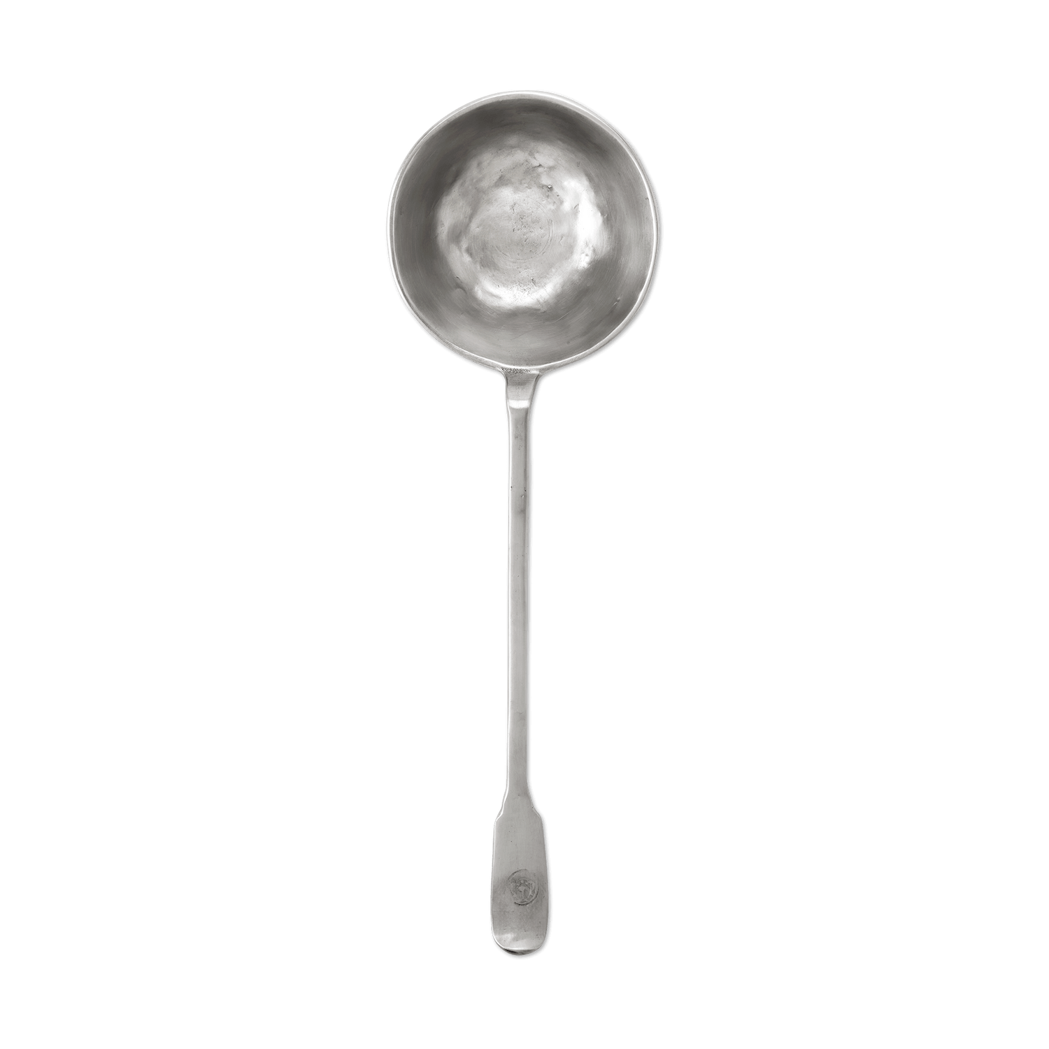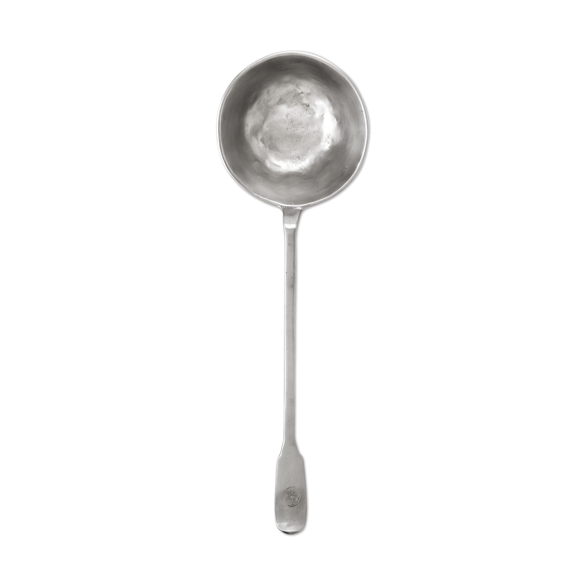 An 18th century design, slightly reinterpreted to accommodate generous servings of hot and cold soups, game-day chili or, gumbo. This 100% Italian pewter ladle features a sweet detail from the antique original that inspired it: a stamped angel hallmark.
