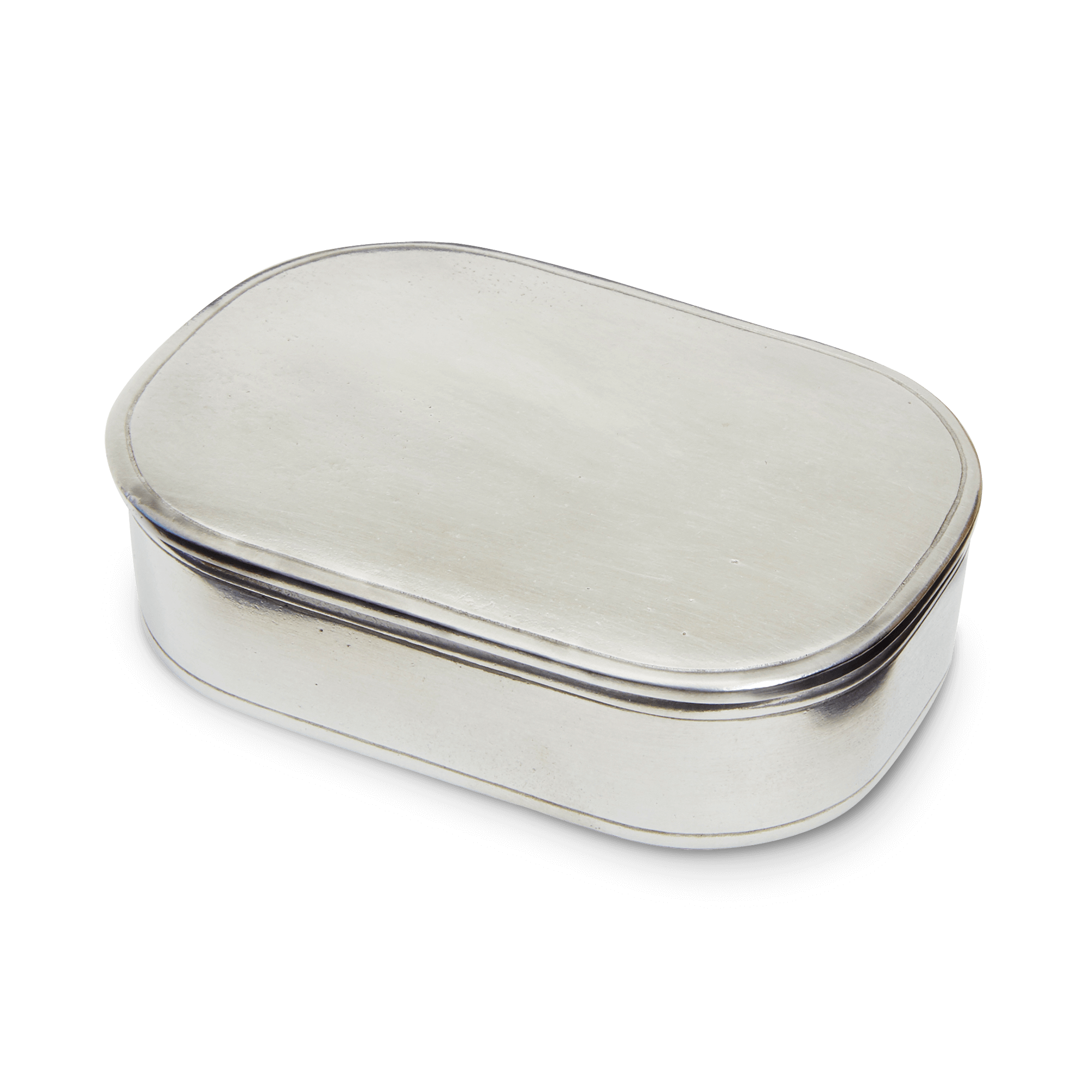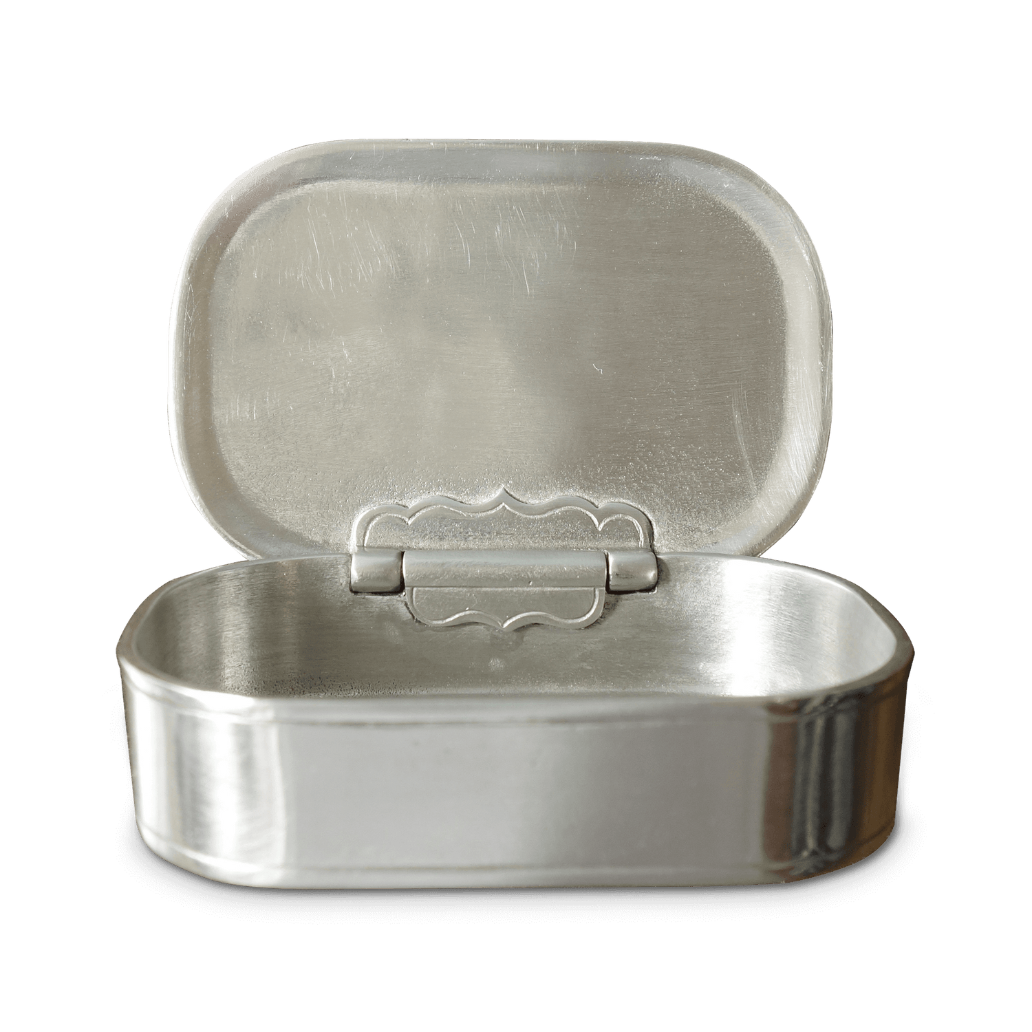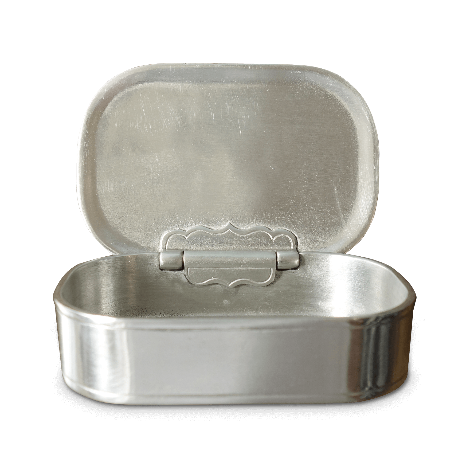 The Brixia Box bears the old Roman name for Brescia, where MATCH is made. This 100% Italian pewter lidded box is wonderfully streamlined on the outside but conceals a charming filigree detail on the hinge within. It makes a thoughtful gift for any occasion and looks beautiful when personalized with hand engraving.