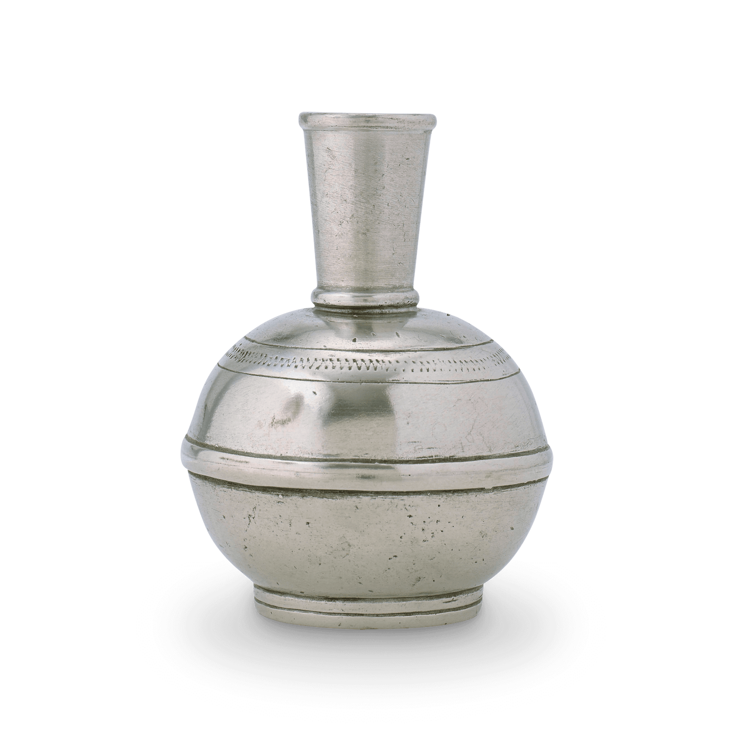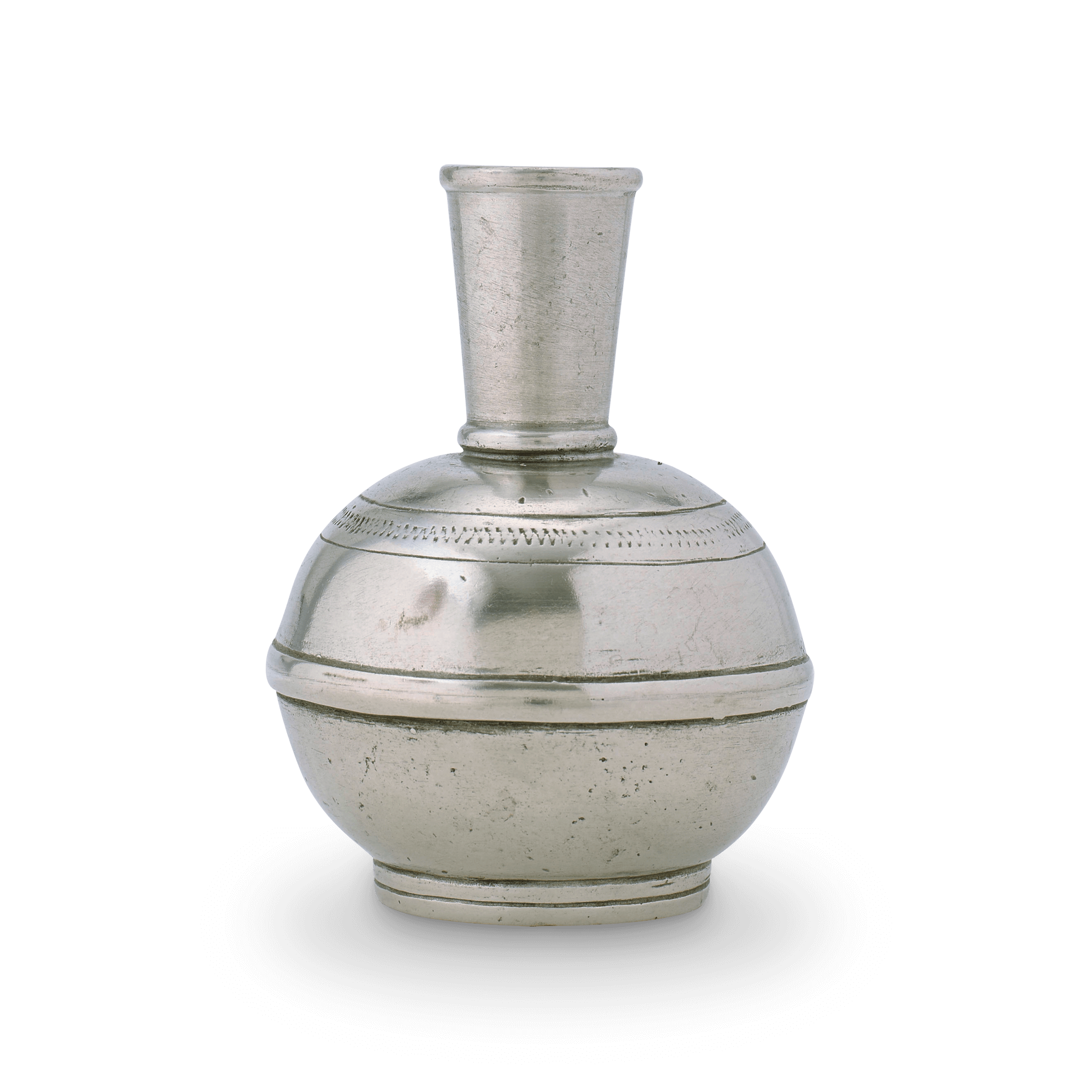 This small, sweet pewter bud vase is perfect for placing on a desk, bedside table, powder room or to accessorize a breakfast-in-bed tray. A diminutive design for just a few beautiful blooms, held in place thanks to the shape of the opening.