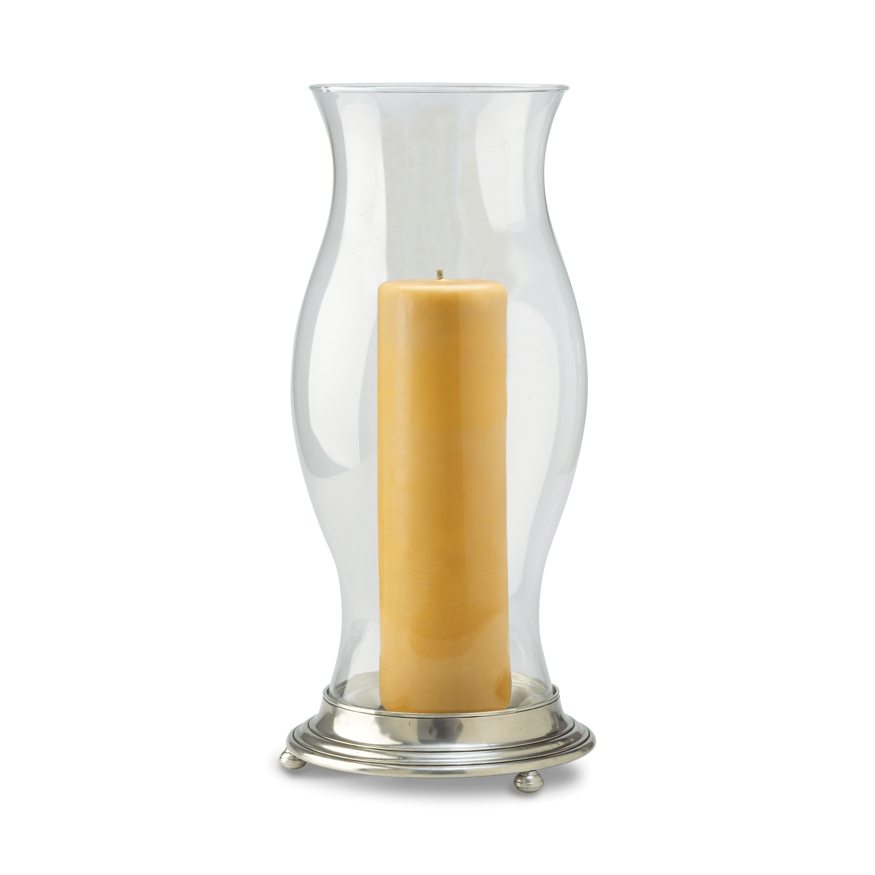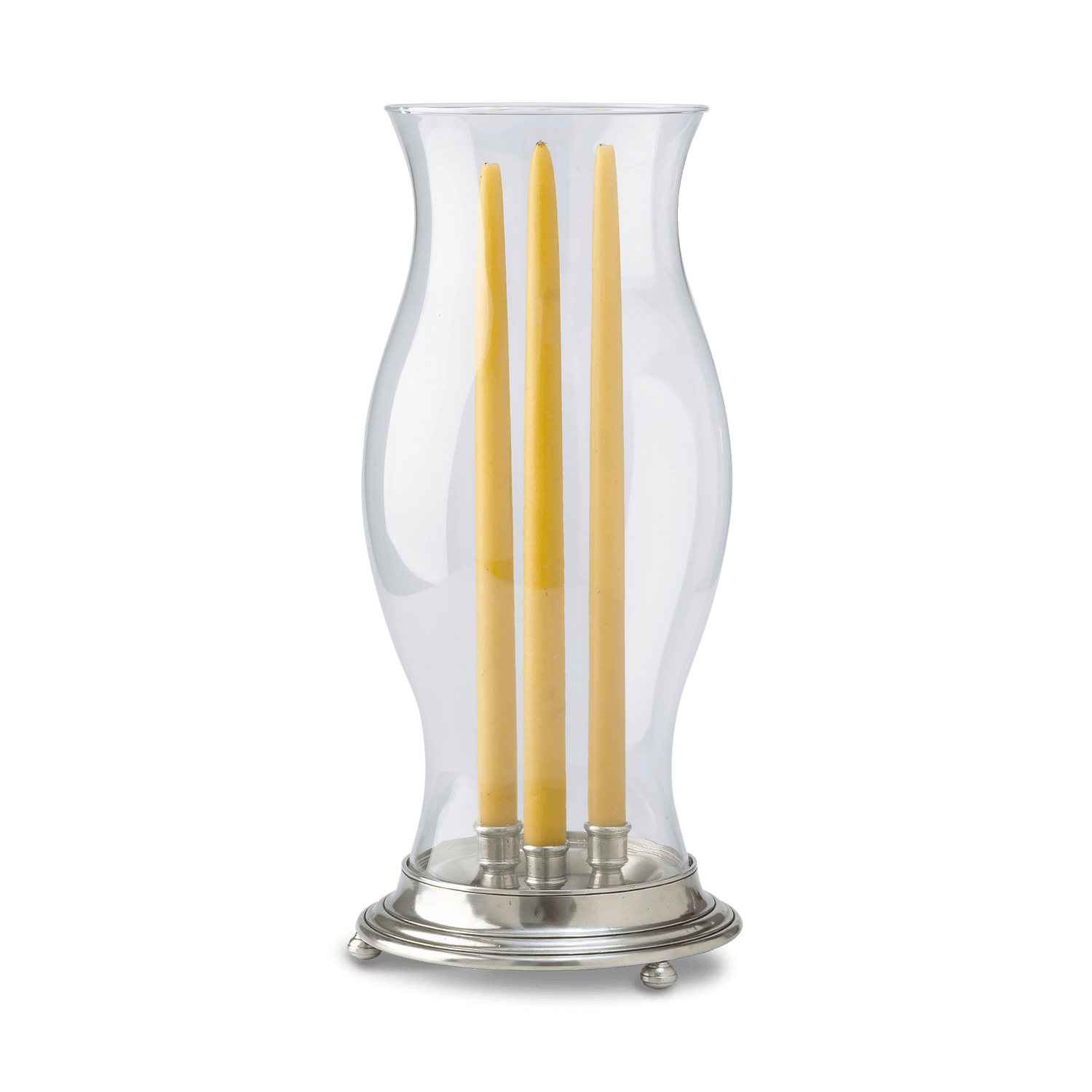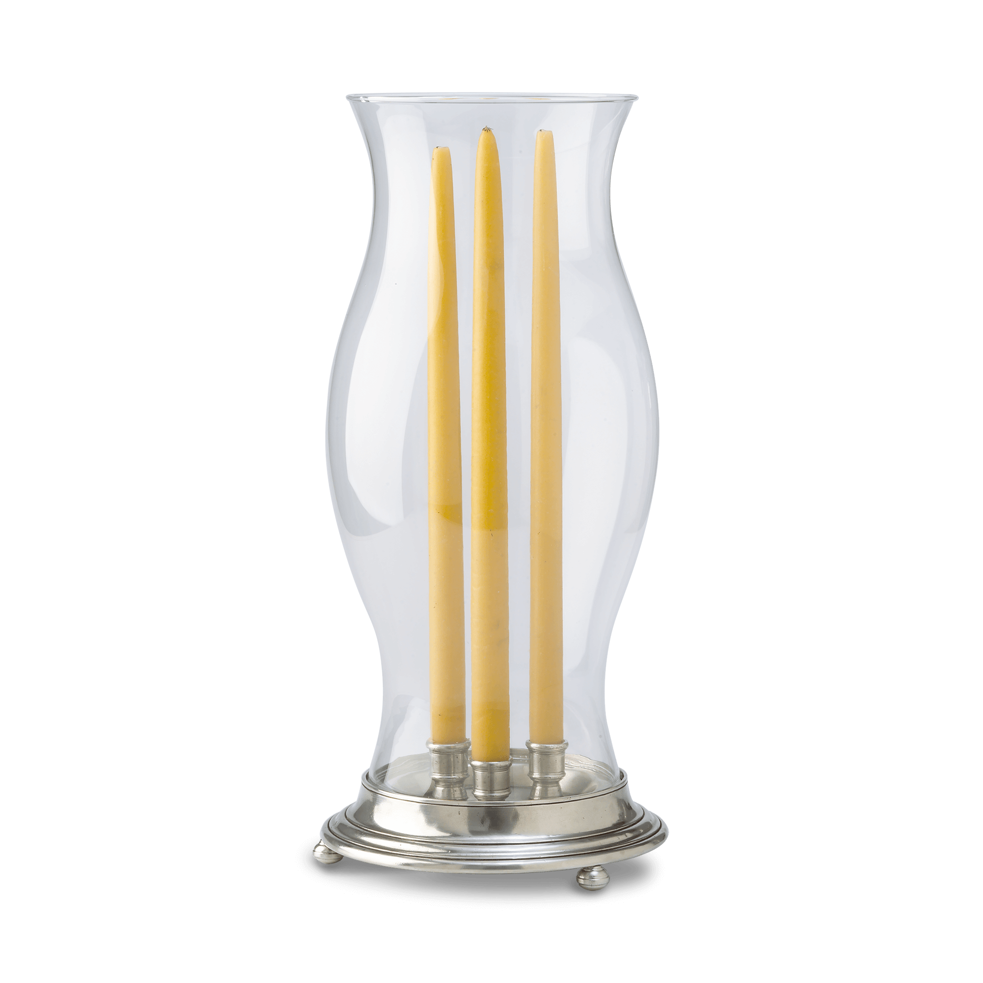 Our convertible pewter and glass hurricane lamps are stylish and all so clever: they’re two designs in one. The pewter base contains an insert that, depending on which side faces up, can hold either a single pillar candle or three tapers.