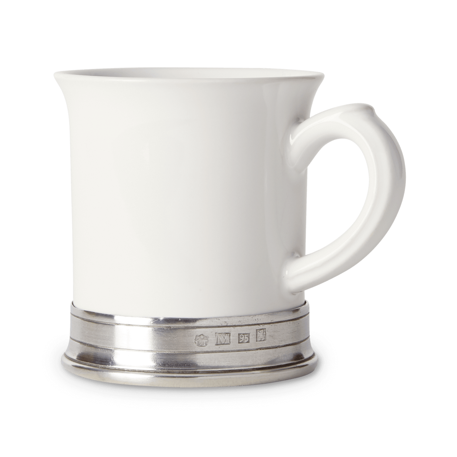 Our Convivio mug enhances your coffee experience, whether it’s a first-thing-in-the-morning ritual, a spiked nip with dessert after a meal, or (we’re not judging) day-long fueling. Together with our signature hallmarked pewter base, subtle design details of the ceramic like the raised stripe and thumb rest on the handle, and the flared lip, combine to create elegant ergonomics that set this style of mug apart.