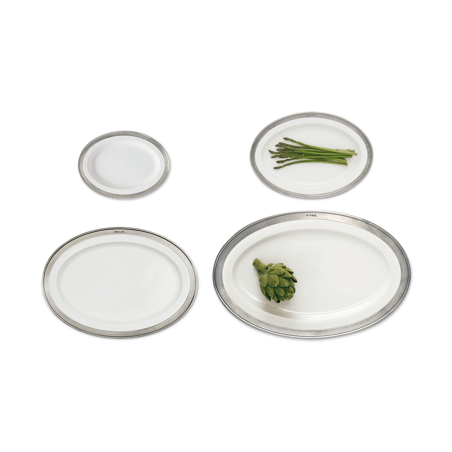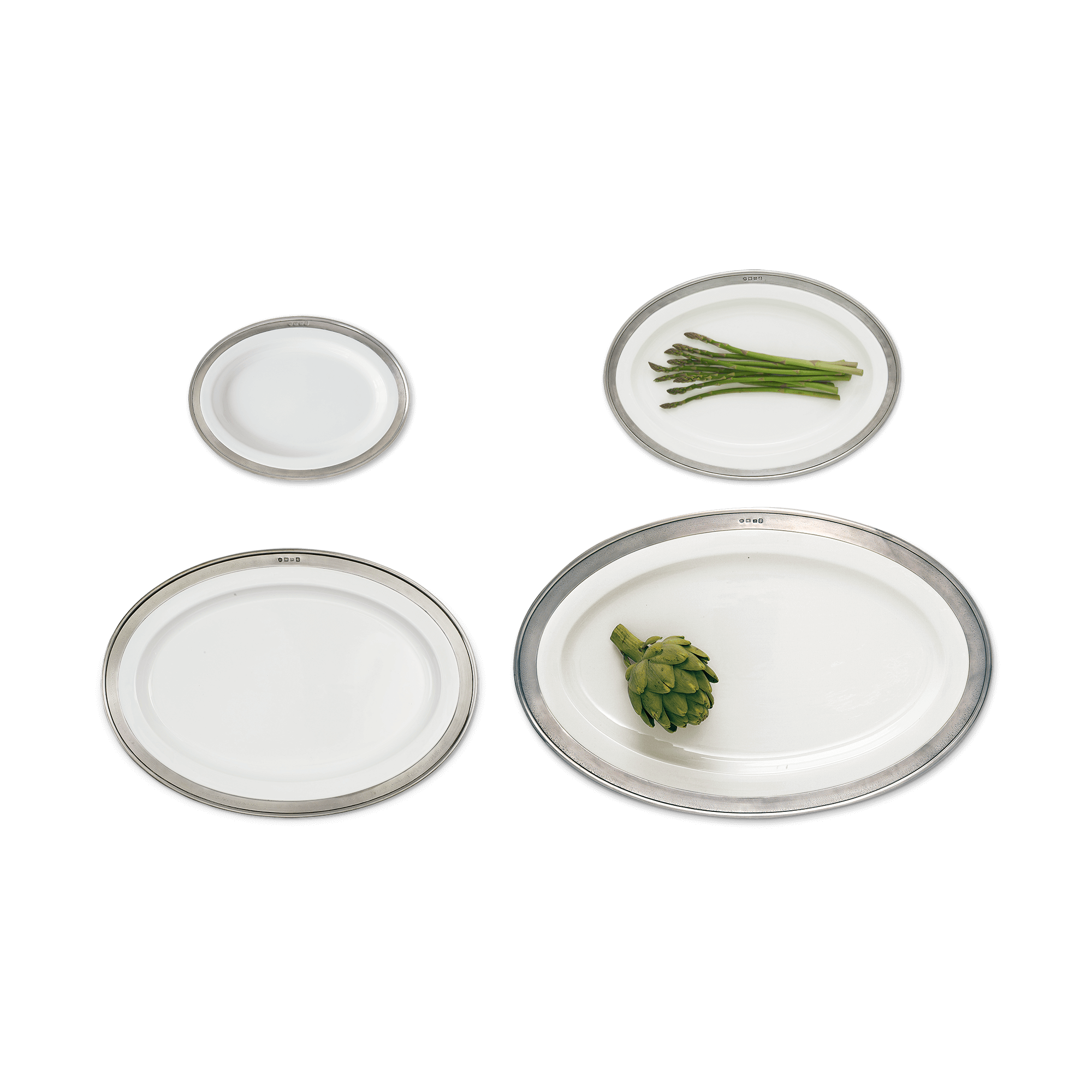 Oval platters are the efficiency experts when it comes to serving – smaller overall footprint, but as much (or more) serving space as their round counterparts. We offer four sizes of this elegant workhorse to accommodate a variety of needs, whether serving vegetables for a gathering, camera-ready table service of your main course and sides or the presentation of your holiday turkey.