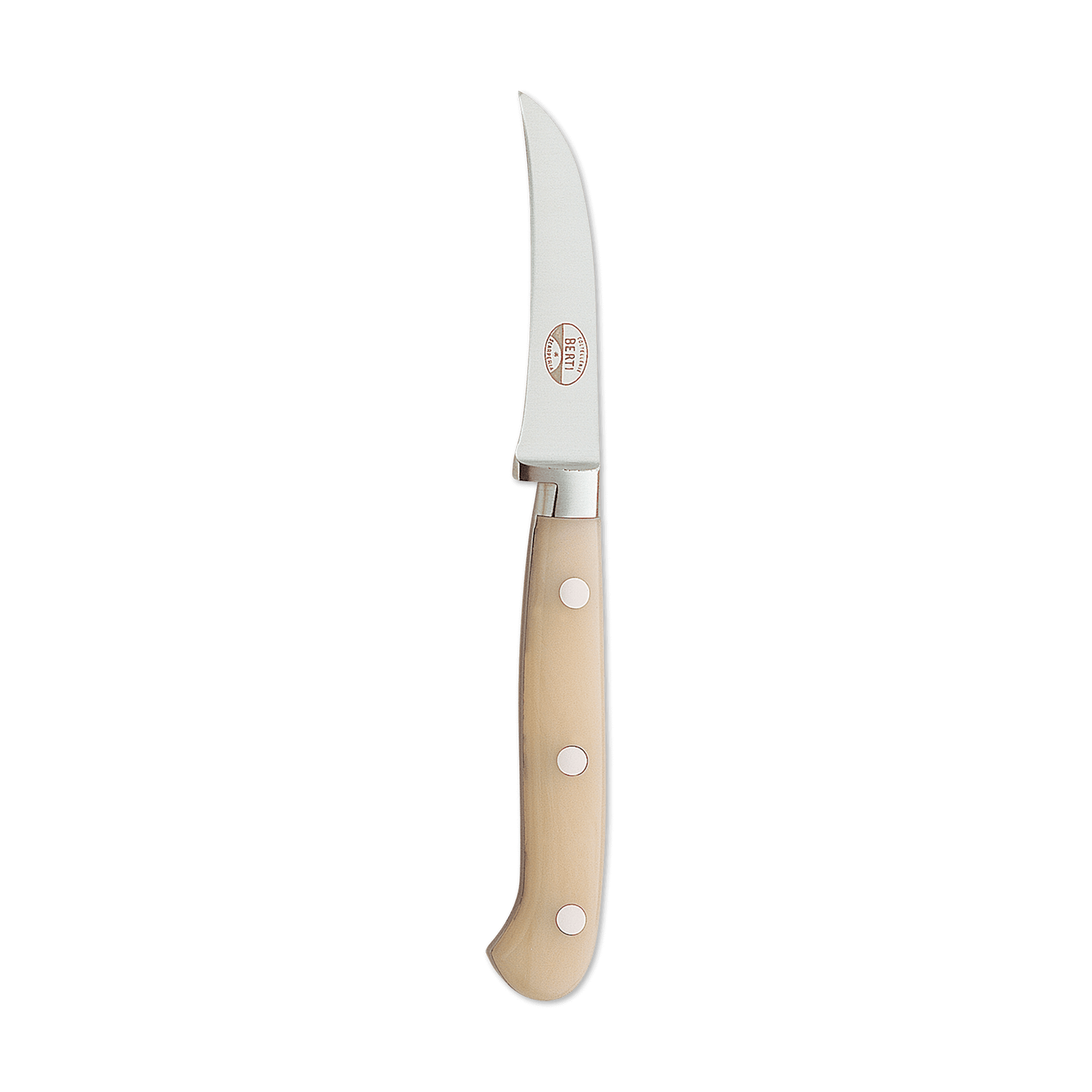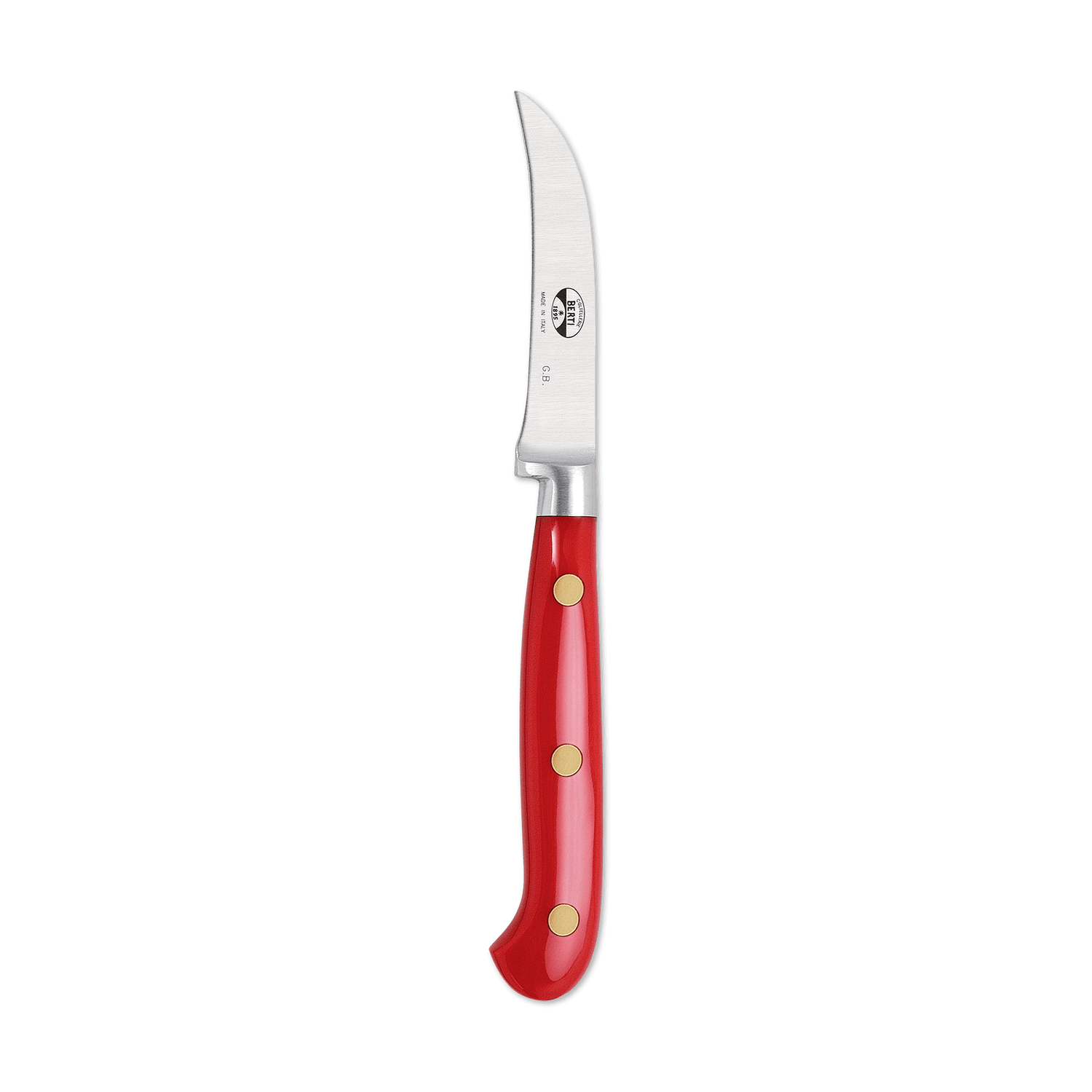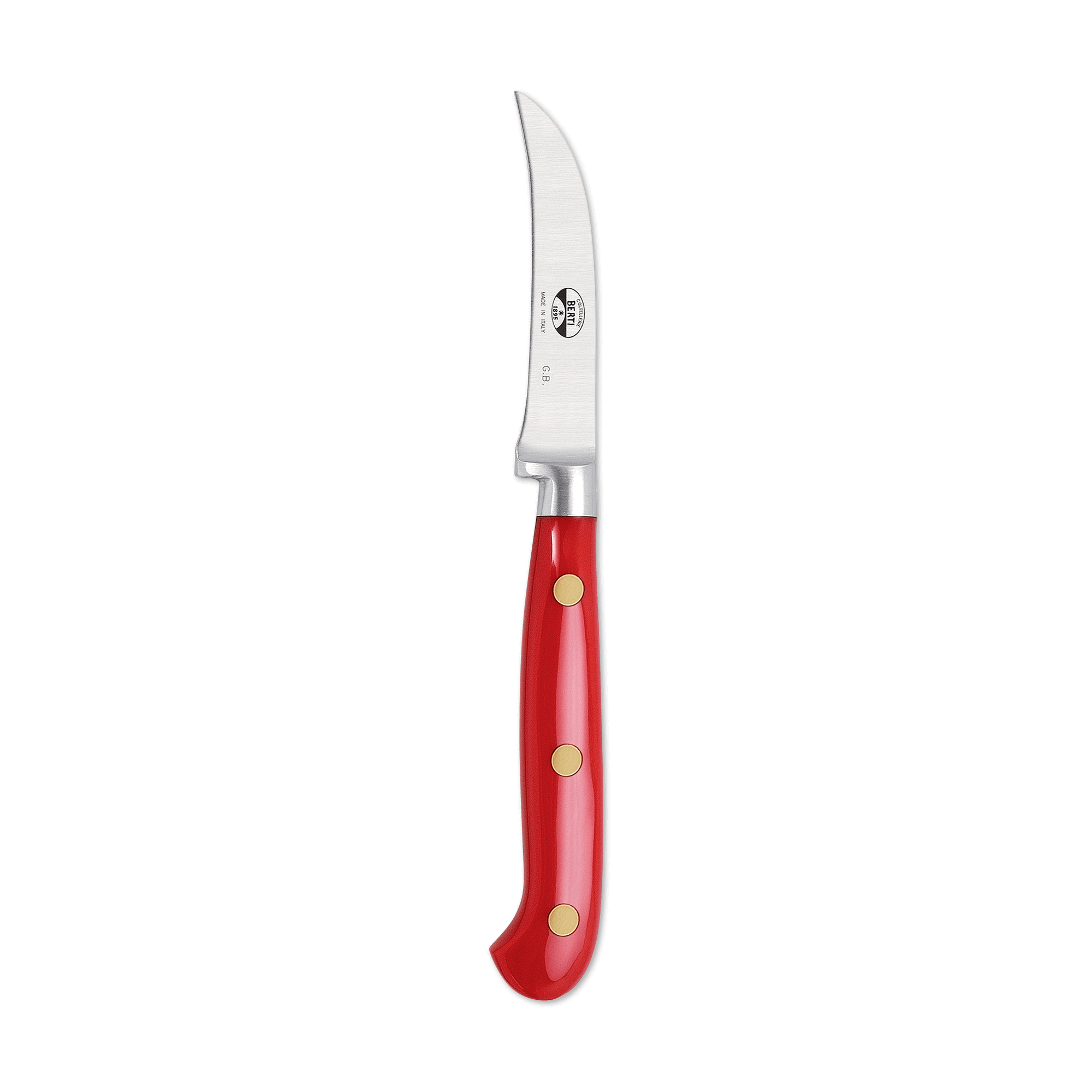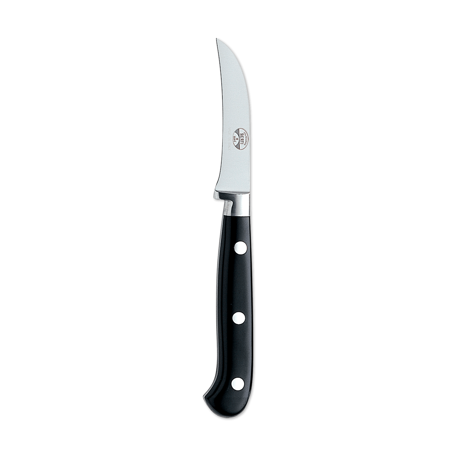 A beautiful marriage of form and function, the Berti curved paring knife features a forged, full tang steel blade and a Lucite handle. Available with or without block. Part of the "Insieme" system, it comes secured in a magnetized wood block that interlocks with the rest of the collection for your own customizable storage system.