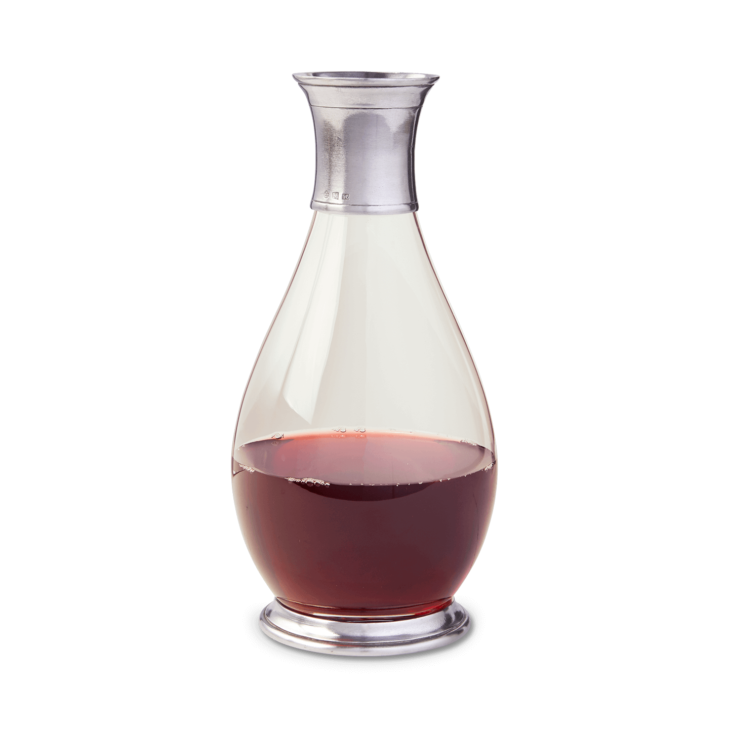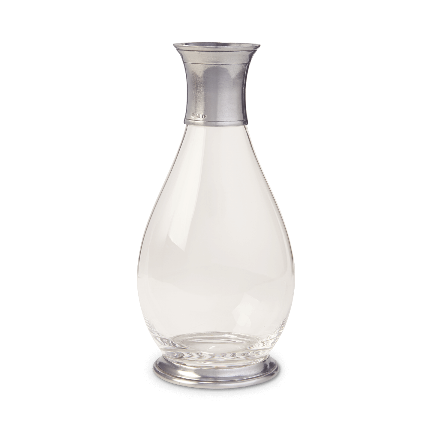 This glass and Italian pewter carafe adds grace and elegance to any beverage service. Water, wine, or fresh juices are all equally enticing. Large enough to accommodate up to a Magnum of your favorite vintage.