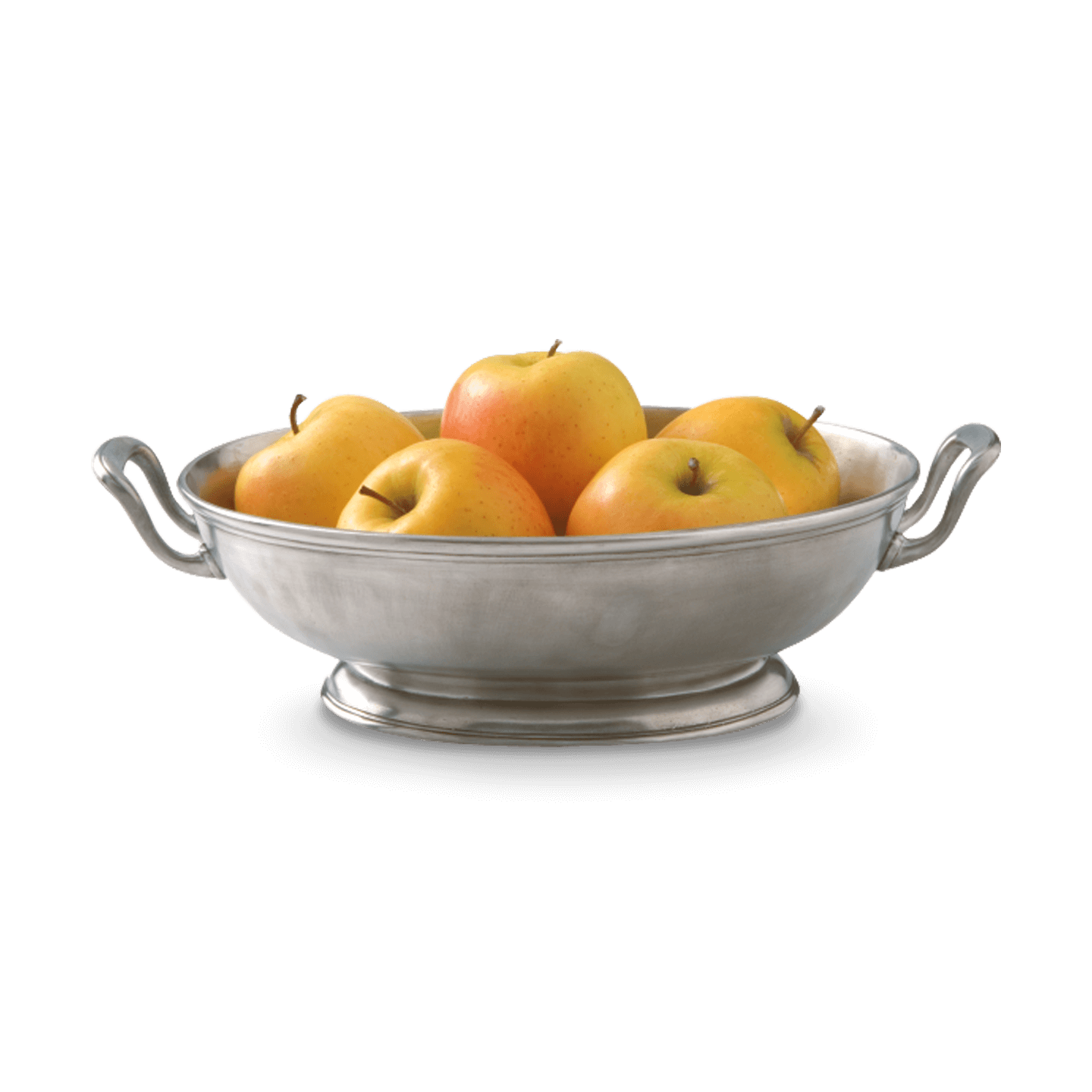 Graceful handles give this all-pewter footed bowl a substantial presence. The perfect design to display your favorite market fruits or your most anticipated side dishes.