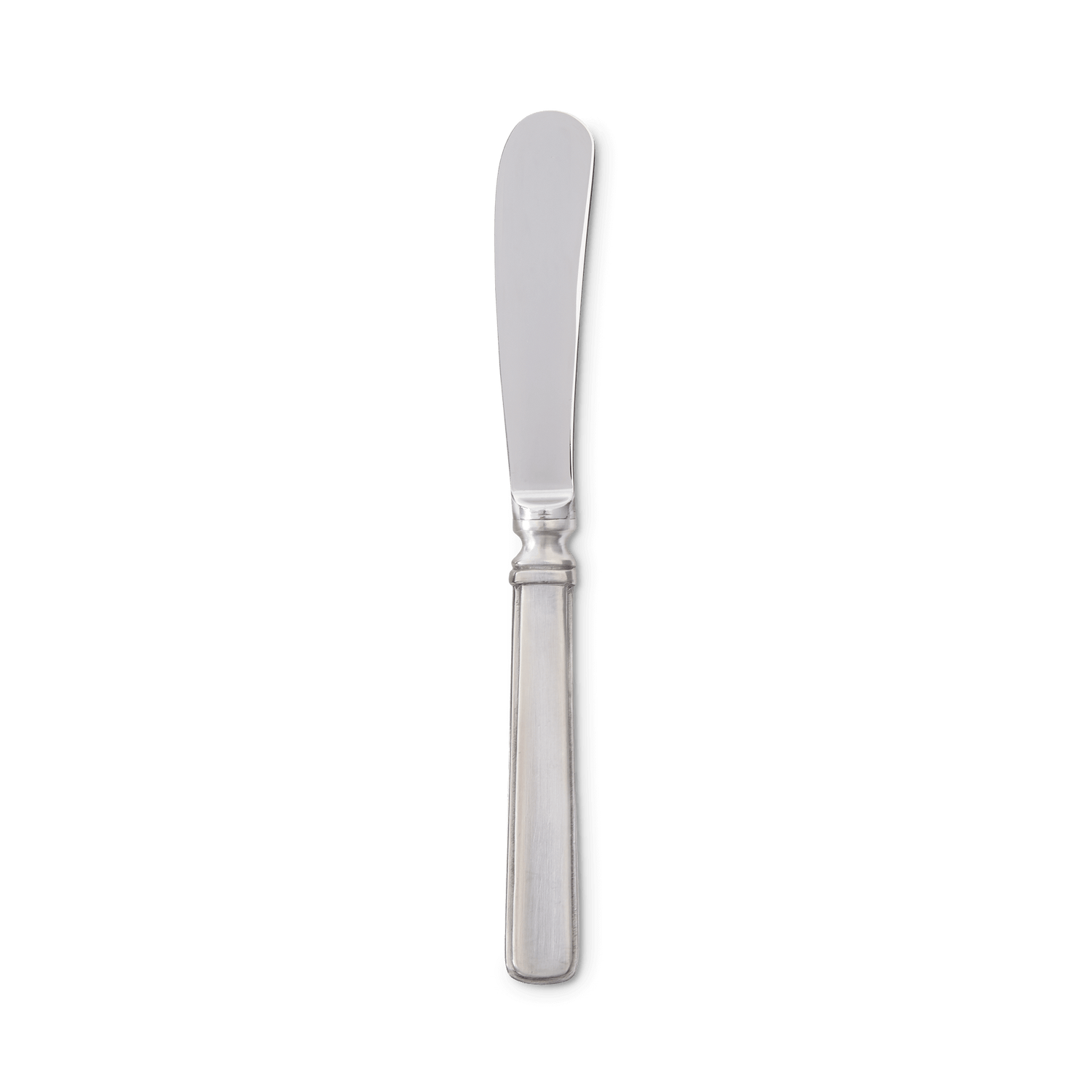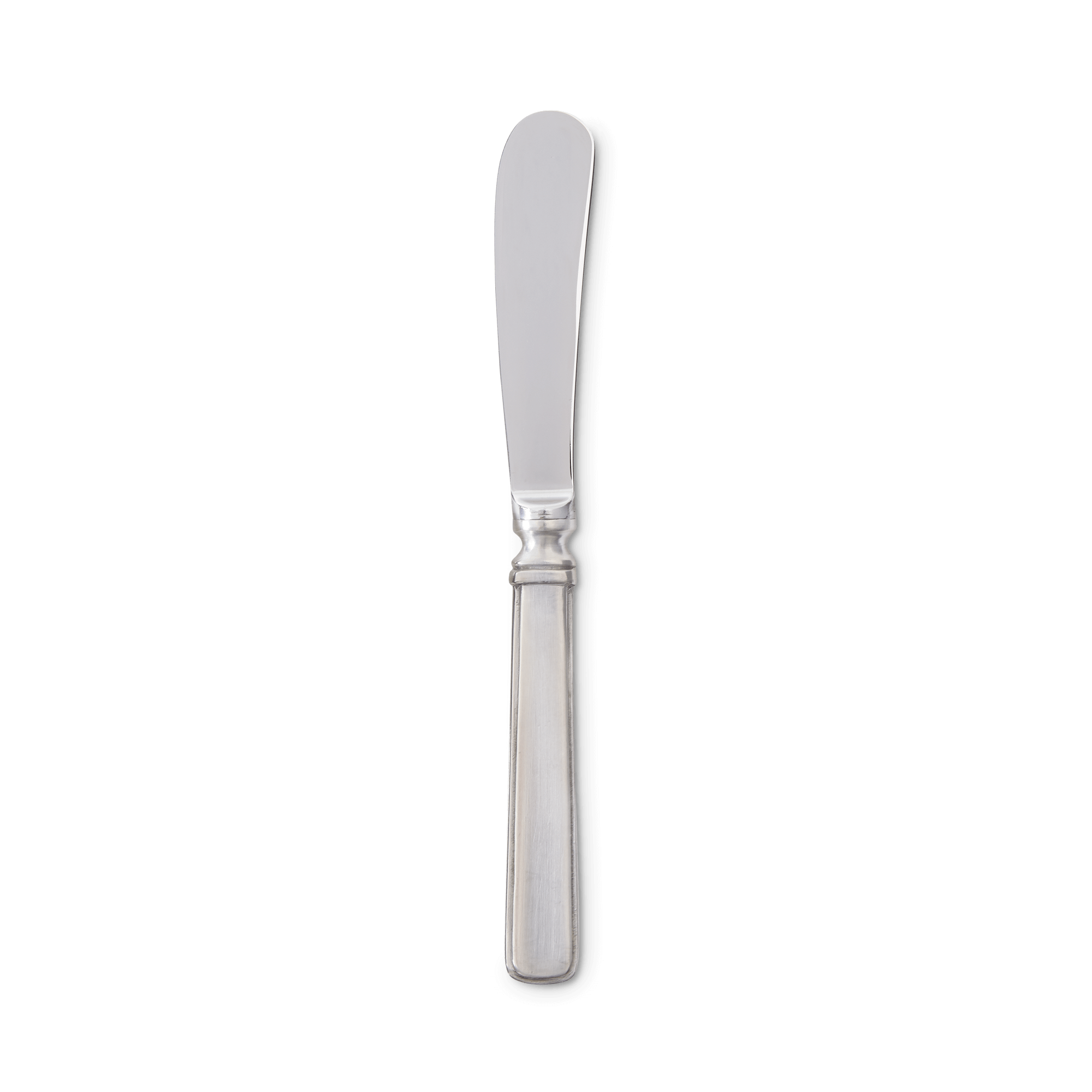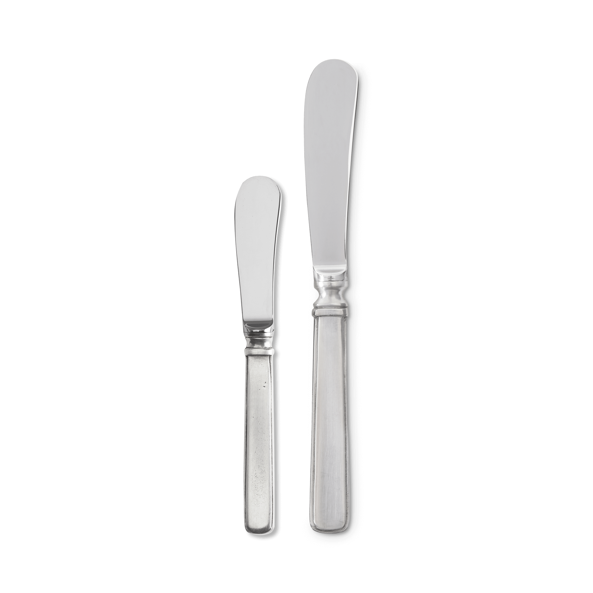 Gabriella flatware's classic, simple design features subtle architectural details including a thumbnail edge and a banded collar. The simplicity allows this butter knife to complement a wide range of dinnerware styles. A perfect size for individual bread plates, the Gabriella small butter knife combines a pewter handle with a stainless steel knife blade. A perfect size for use with a butter dish or butter dome, the Gabriella large butter knife combines a pewter handle with a stainless steel knife blade.
