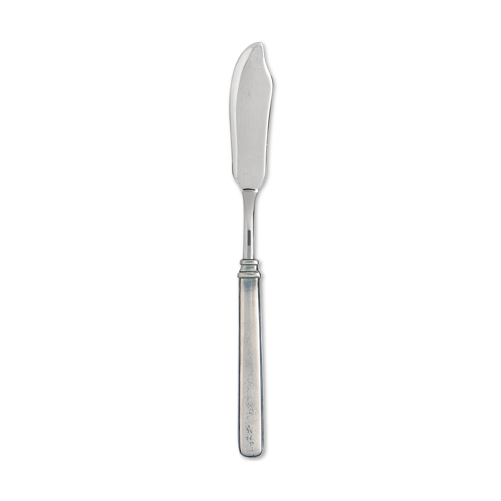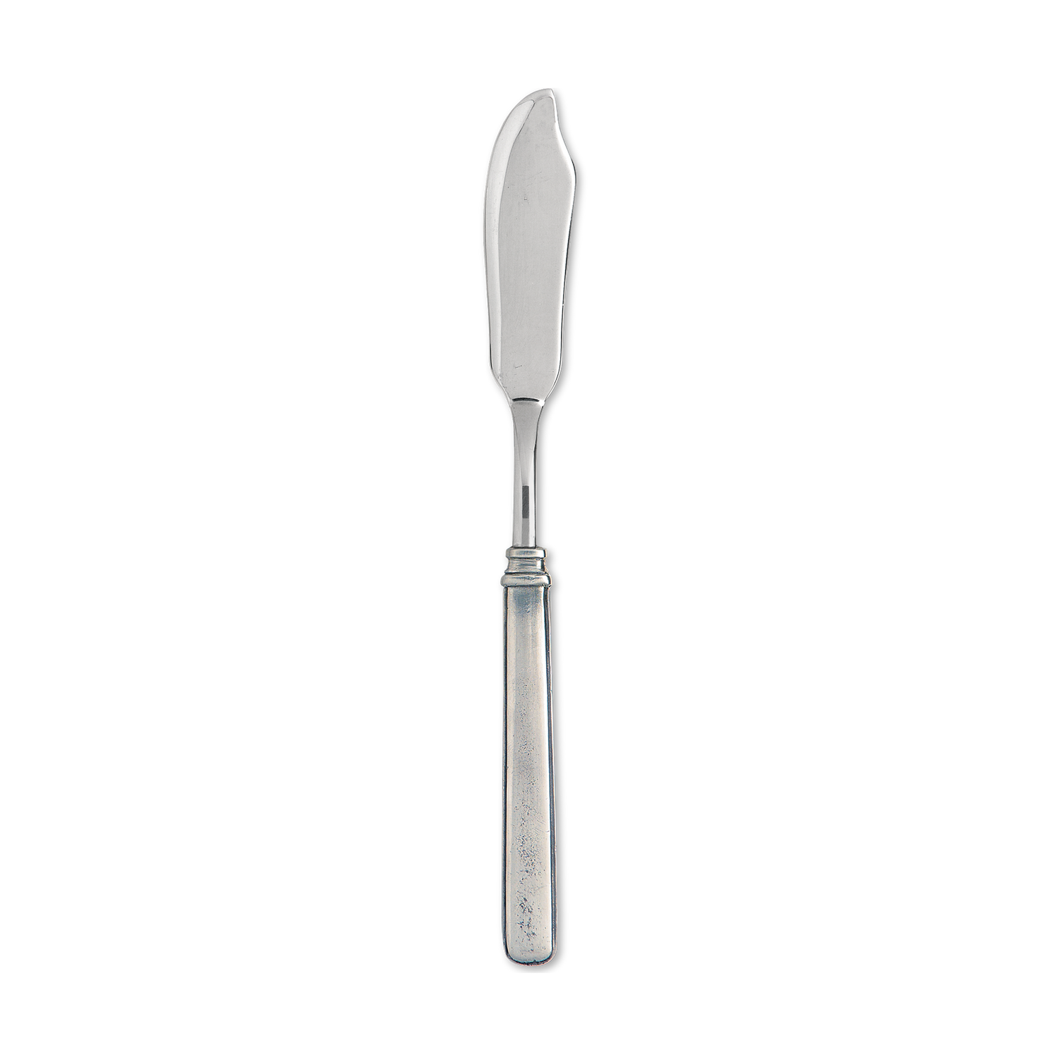 Gabriella flatware's classic, simple design features subtle architectural details including a thumbnail edge and a banded collar. The simplicity allows the pewter and stainless steel Gabriella fish knife to complement a wide range of dinnerware styles.