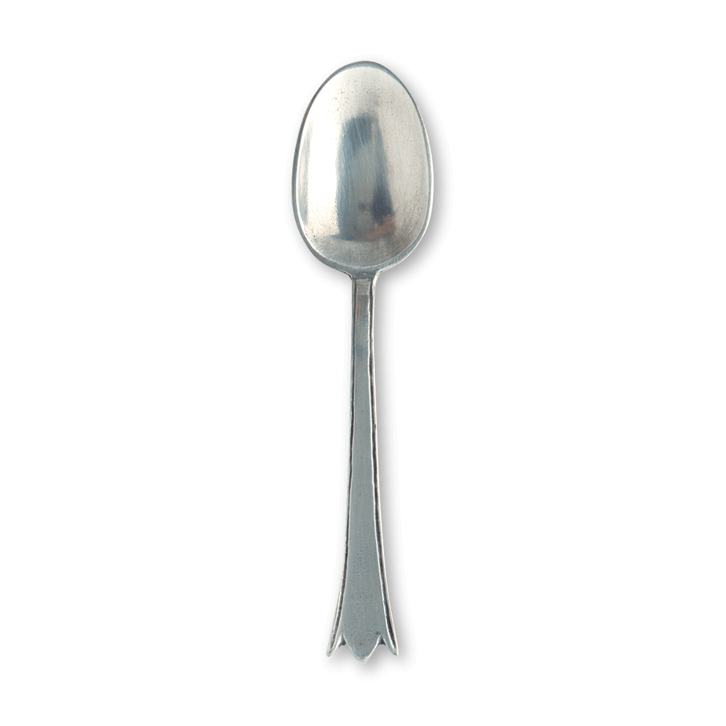 With its distinctive flared handle, this large 100% pewter crown spoon is perfect for serving up your favorite soup, yogurt, or cereal with regal style.