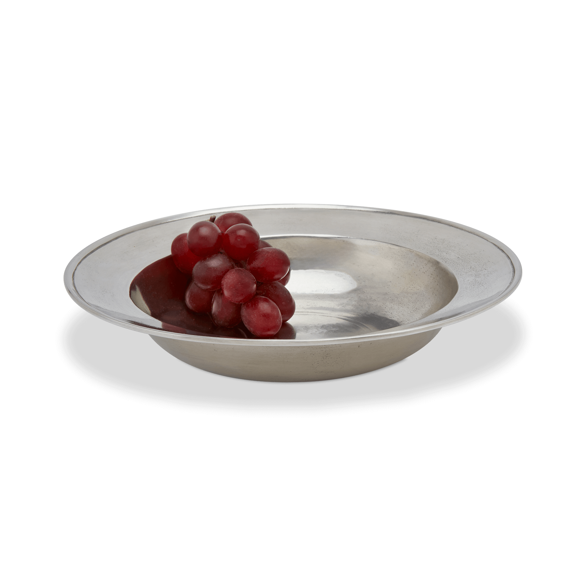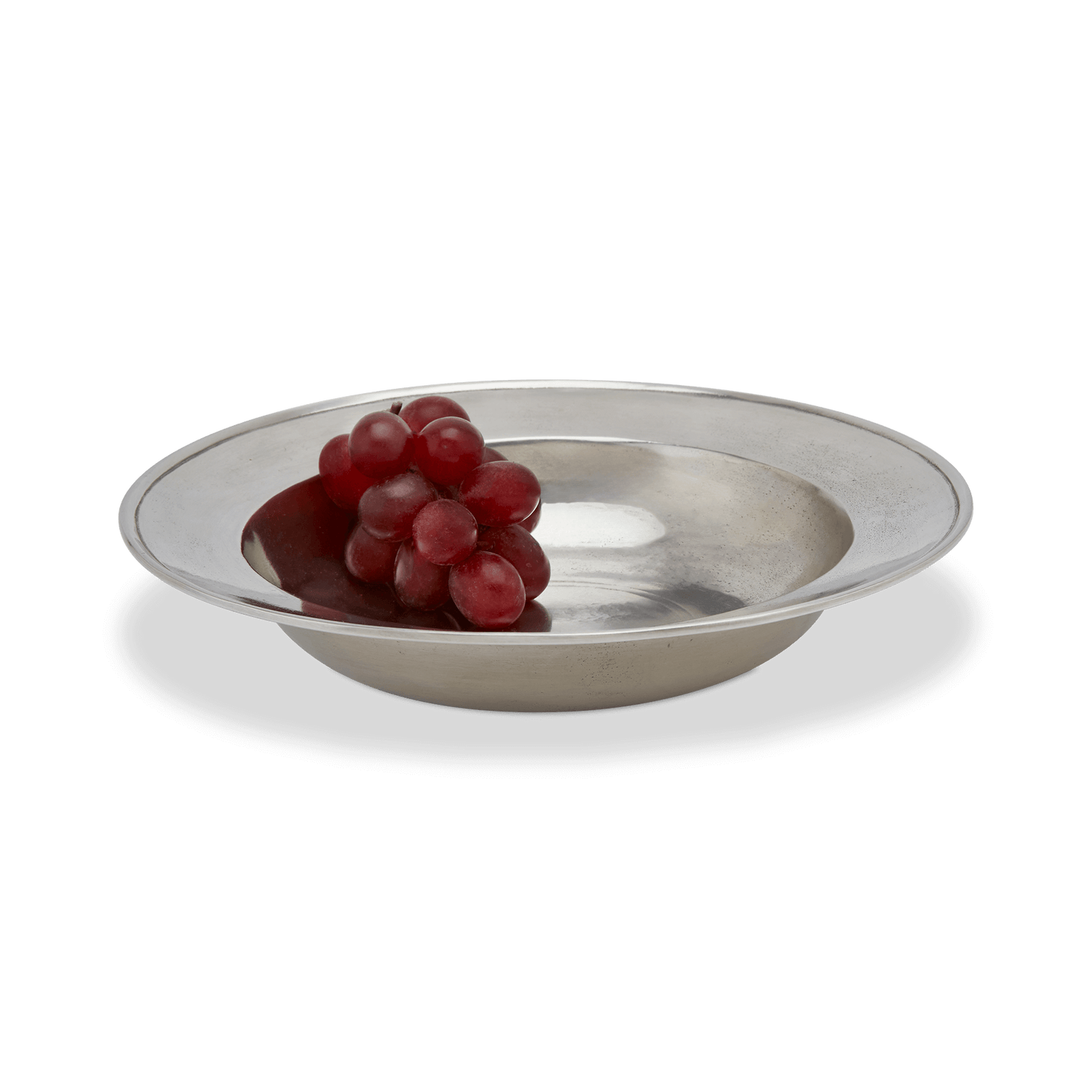 With its subtle raised edge, the Lombardia all-pewter bowl will add a timeless touch of elegance to any corner of the home. Understated yet distinctive, the smaller size is perfect for sharing your favorite cocktail snacks on the bar or a warm welcome of potpourri on an entrance table. The larger size features a broad rim which makes for an eyecatching setting for fresh fruit or the perfect showcase for side dishes at a family feast.
