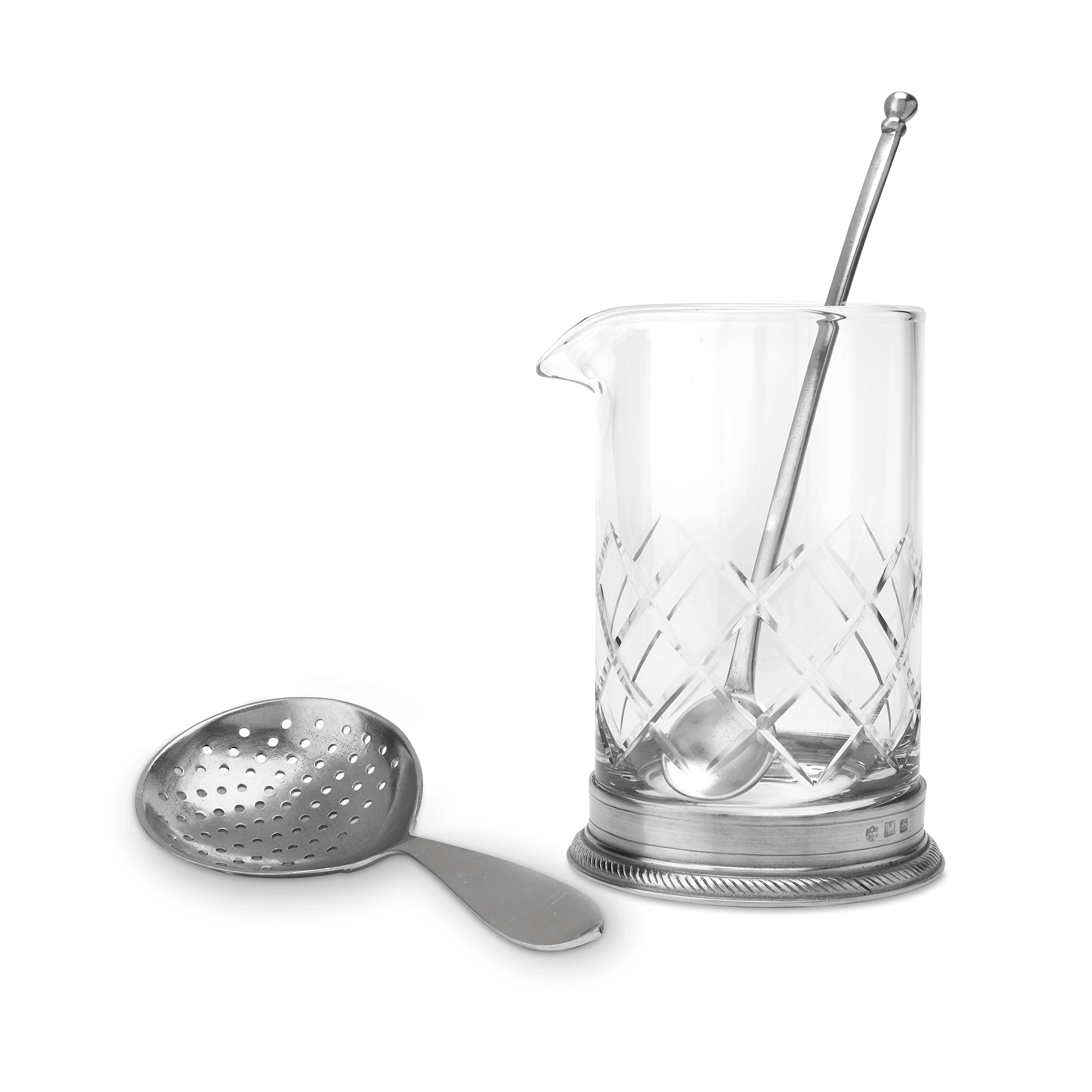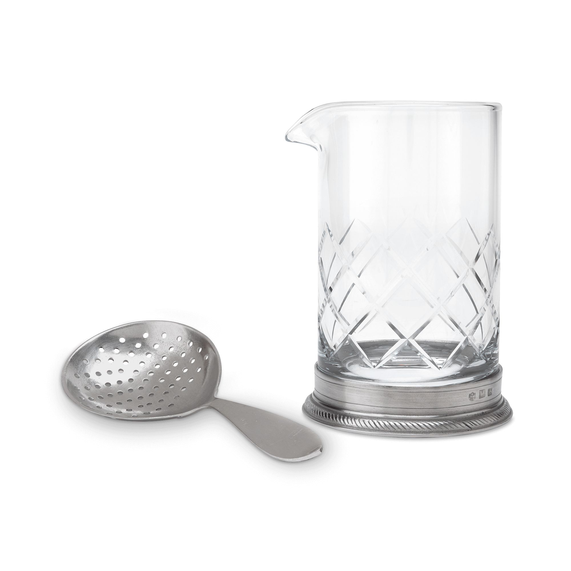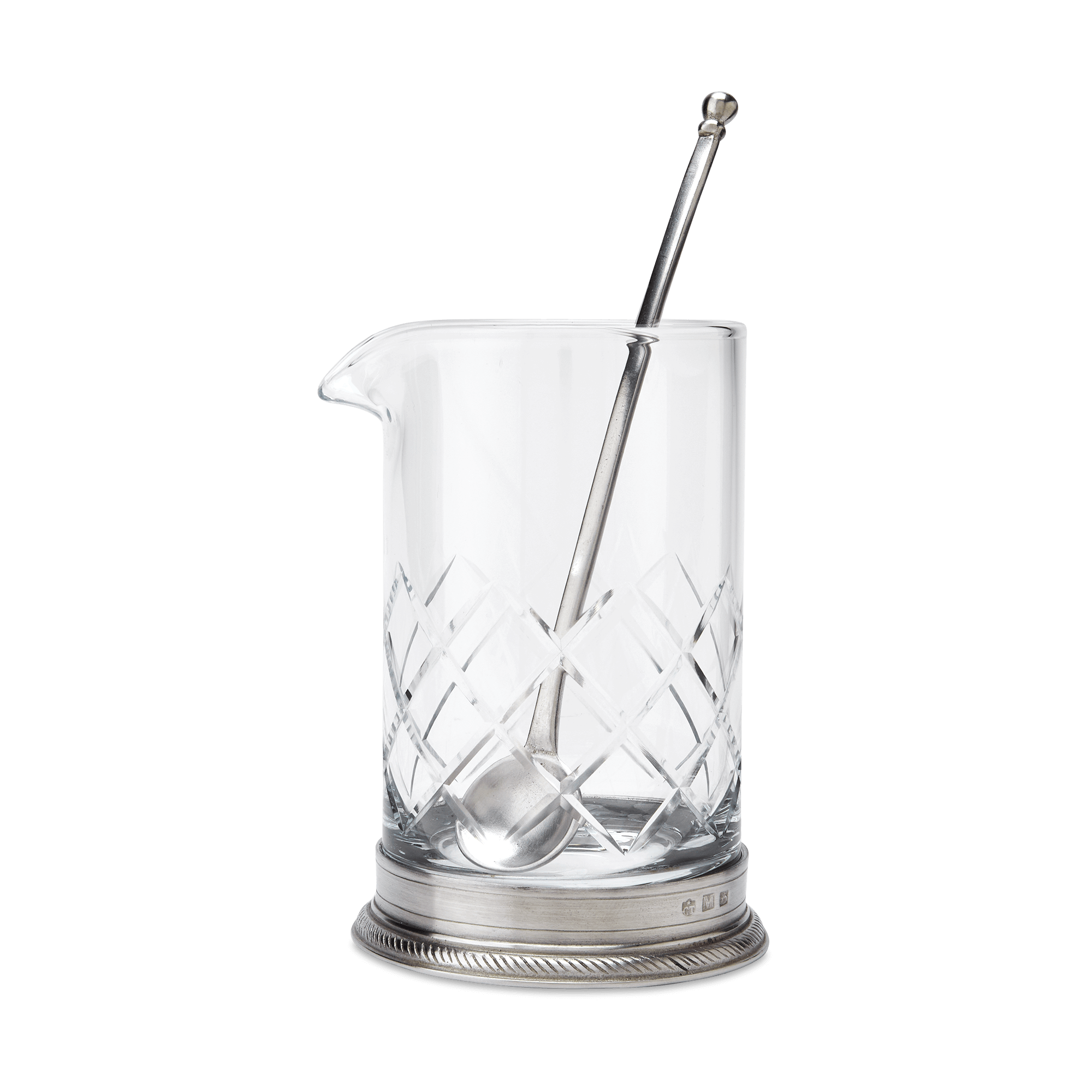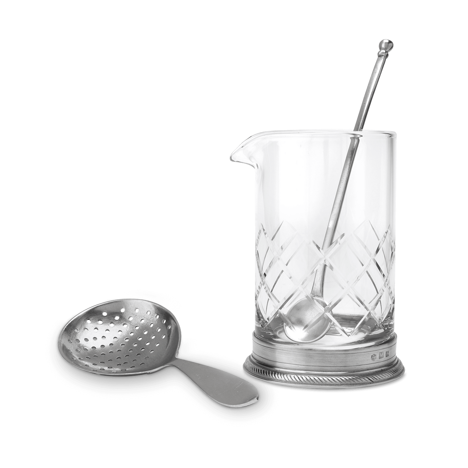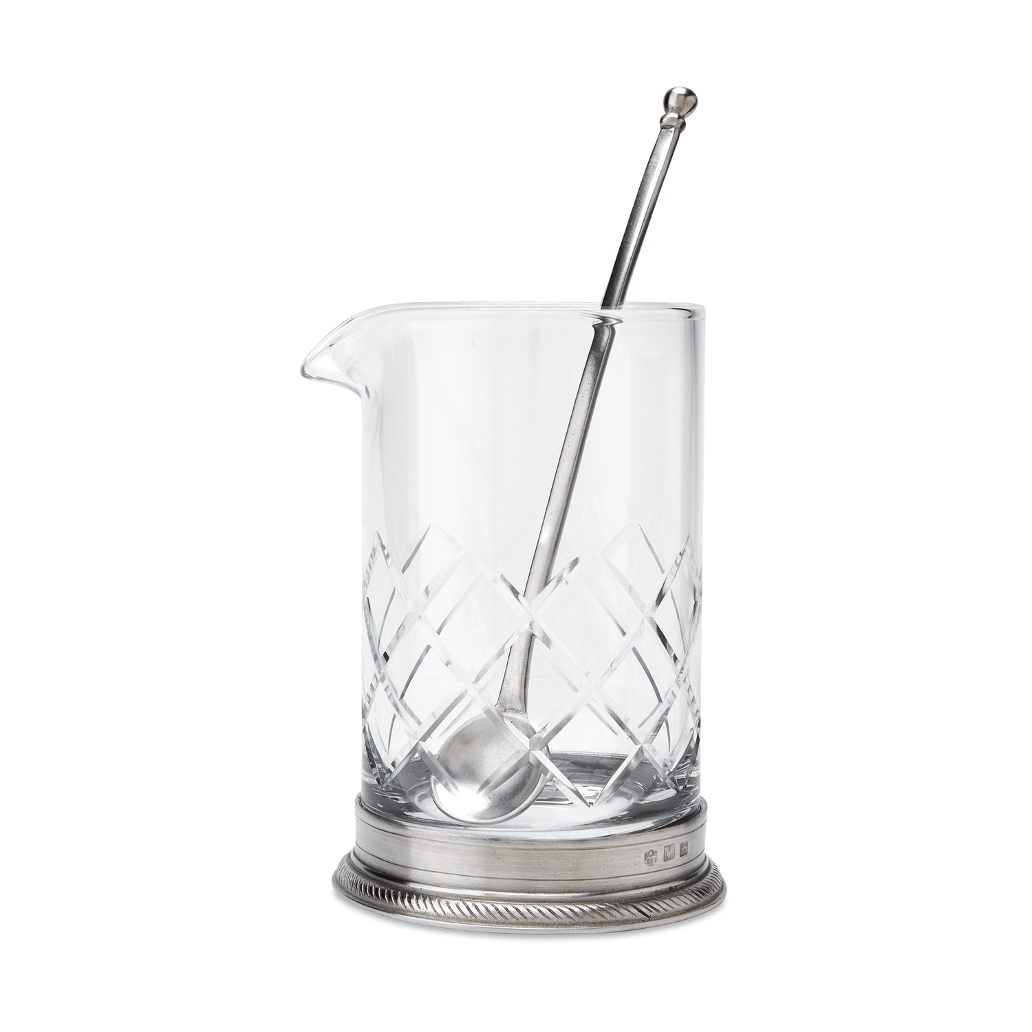 The Luisa mixing glass features a stylish blend of Italian pewter and lead-free European crystal detailed with a classic cutwork design to ensure a slip-free grip and an engraved rope pattern that perfectly complements the rest of our Luisa collection. A welcome addition to any bar top and the perfect upgrade for your favorite mixologist.The Luisa mixing glass is optionally available with a pewter strainer that fits perfectly on top for elegant single-handed serving. When stirred is better than shaken, add our pewter stirrer for a more nuanced preparation than can be achieved with a shaker.