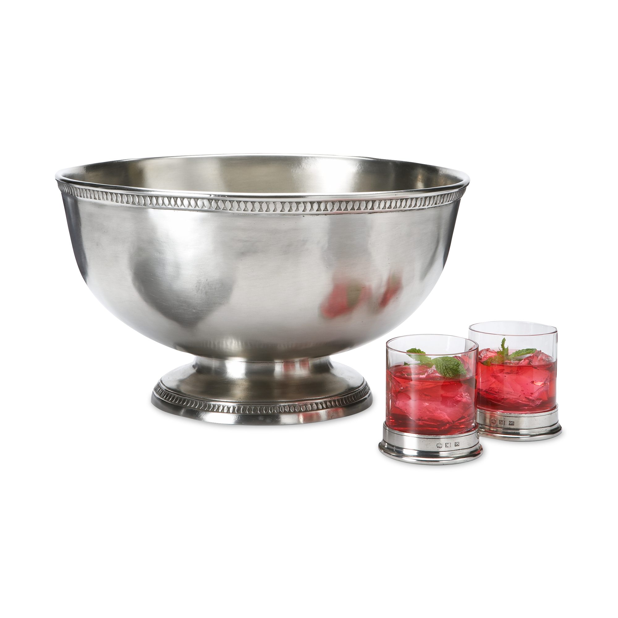 Our handsome all-pewter punch bowl, with its three-gallon volume, reliably becomes the life of any party. We’re finding our friends are now adding this festive libation to their entertaining must-haves year-round, often creating one recipe for those who enjoy an alcoholic beverage, and another for teetotalers. This punch bowl features a leaf-motif around the upper and lower rims that was originally hand-punched. We suggest enhancing the serving of your punch with our Antique Ladle.