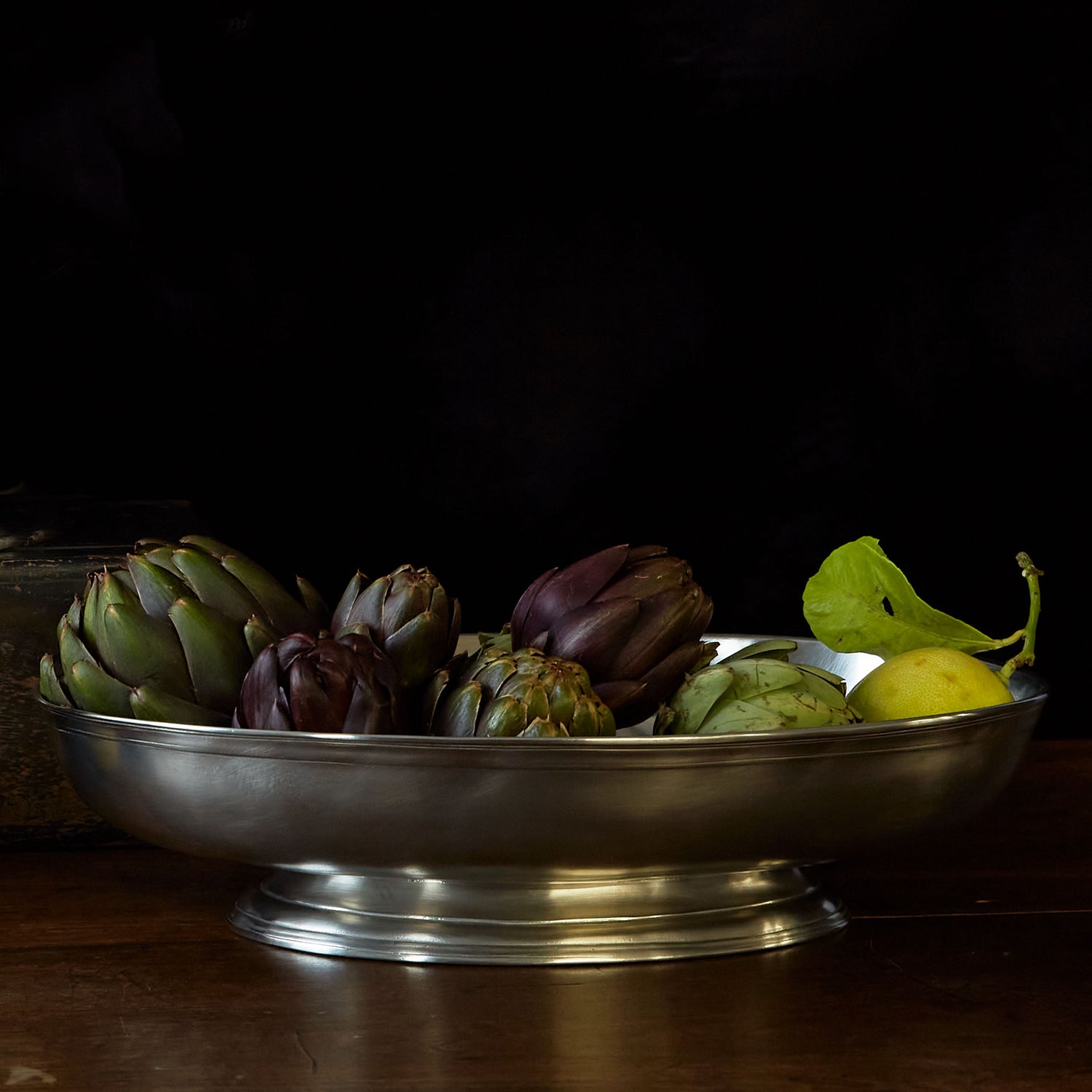 Add the perfect warm glow to your favorite fruit or floral arrangements with this classic footed Italian pewter bowl. A graceful centerpiece to enliven your table for special occasions or the just the everyday.