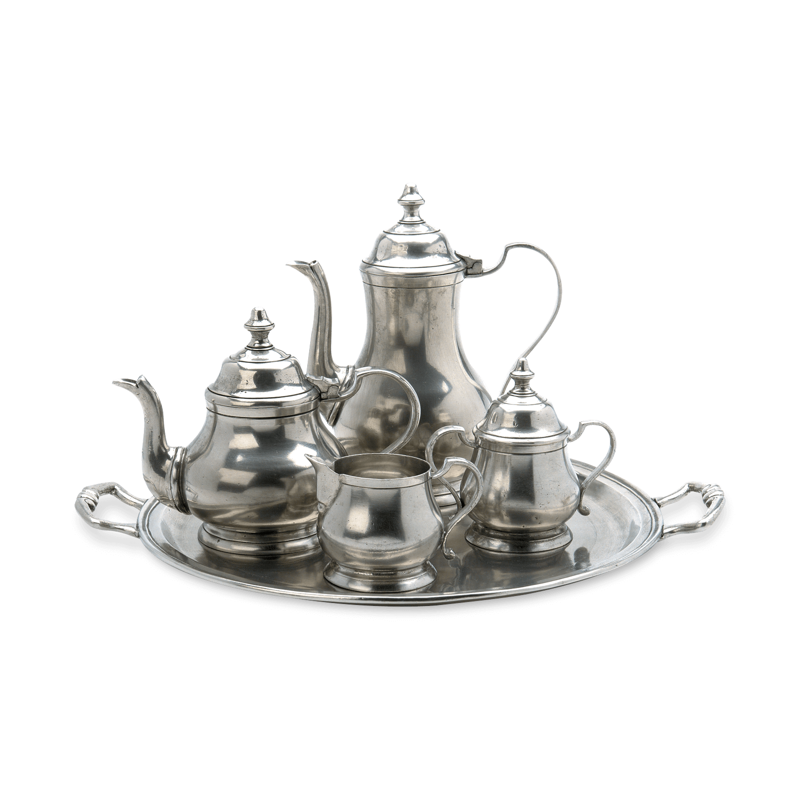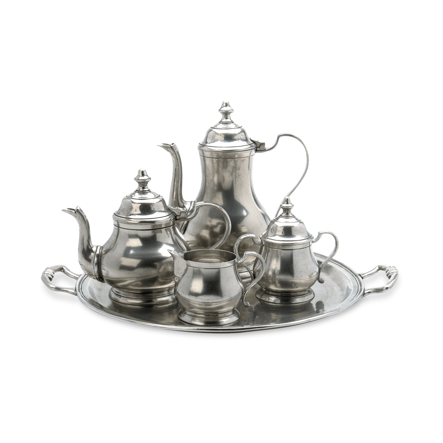 A charming and versatile handled tray. Designed for our classic coffee & tea service, we love this round pewter tray for passing appetizers and aperitifs before dinner.