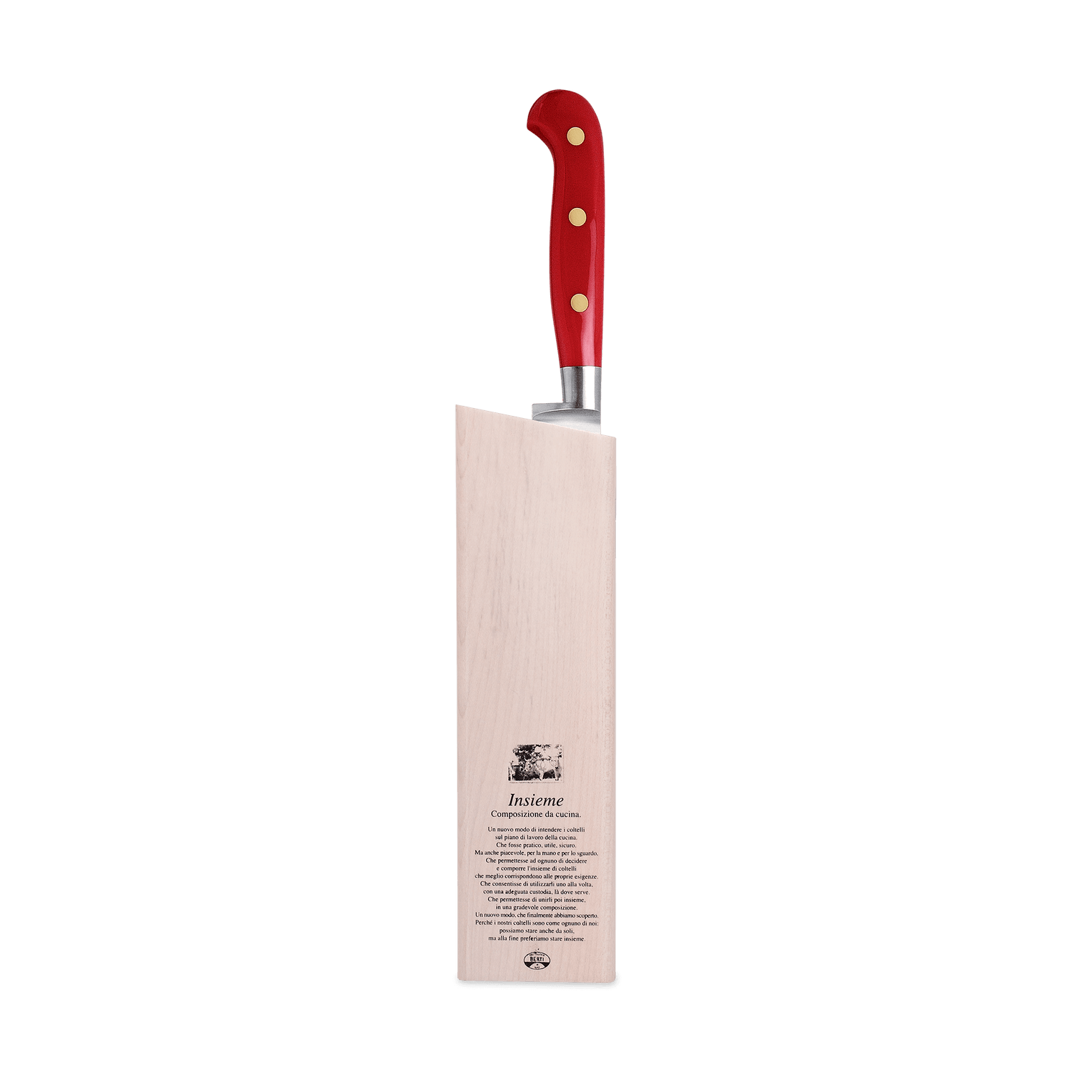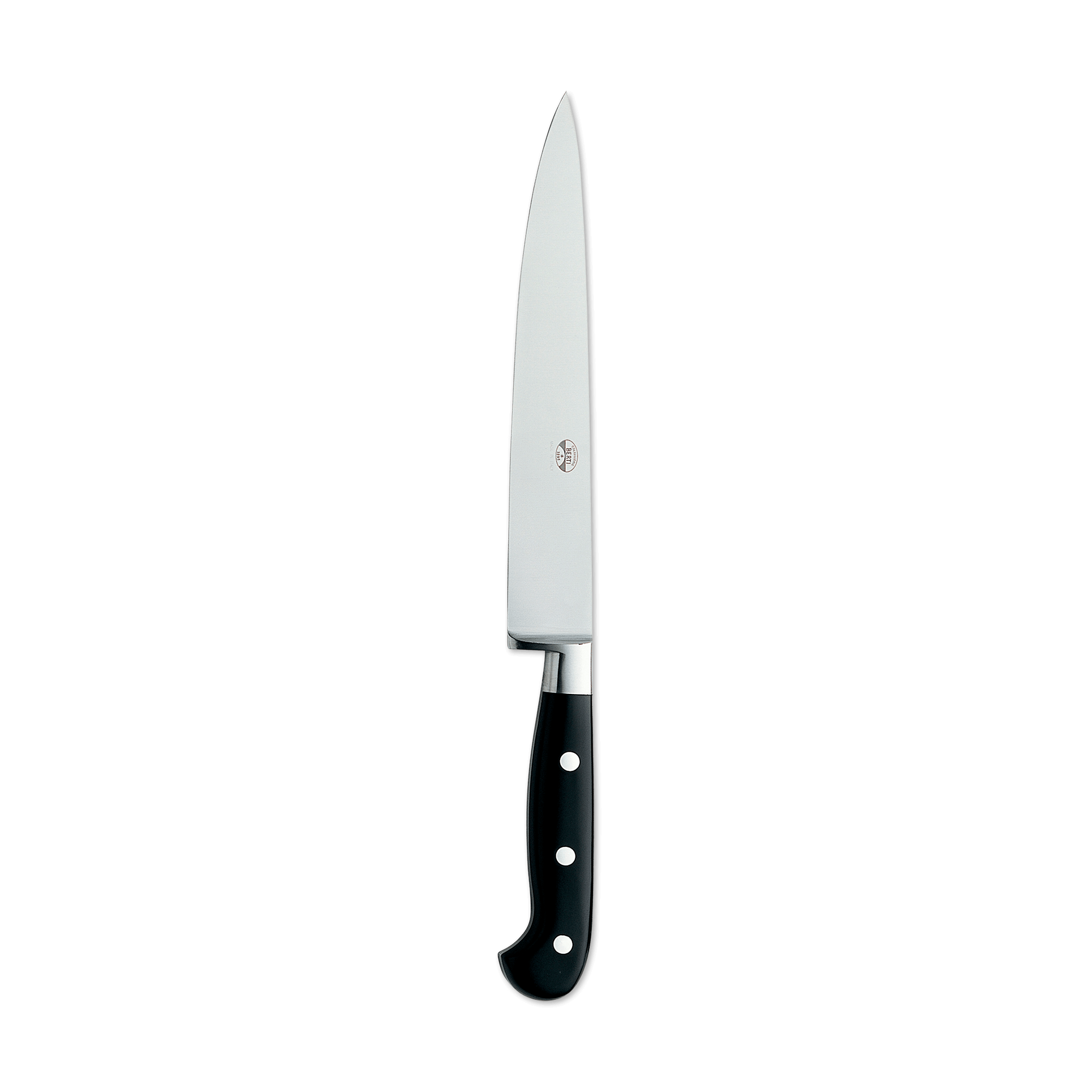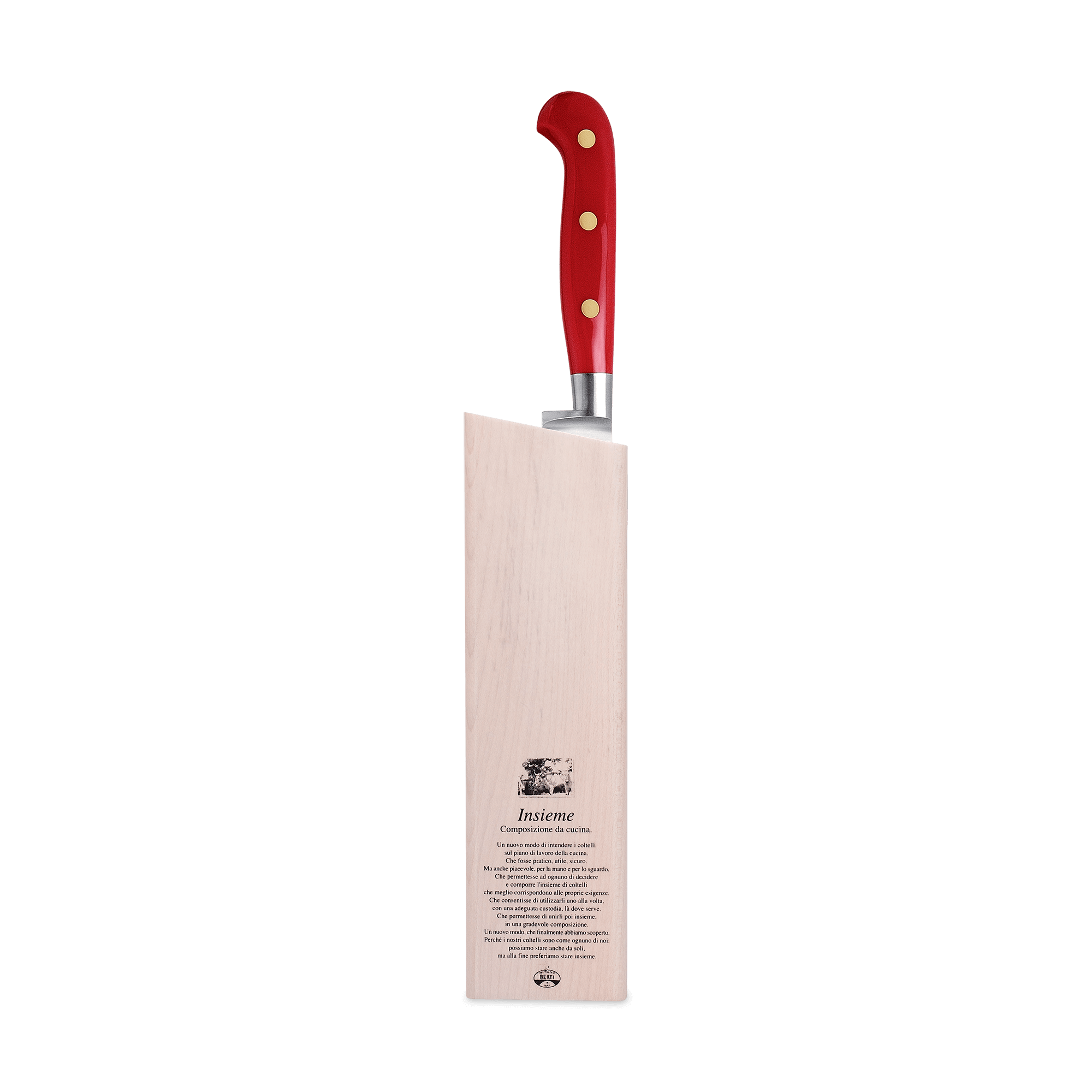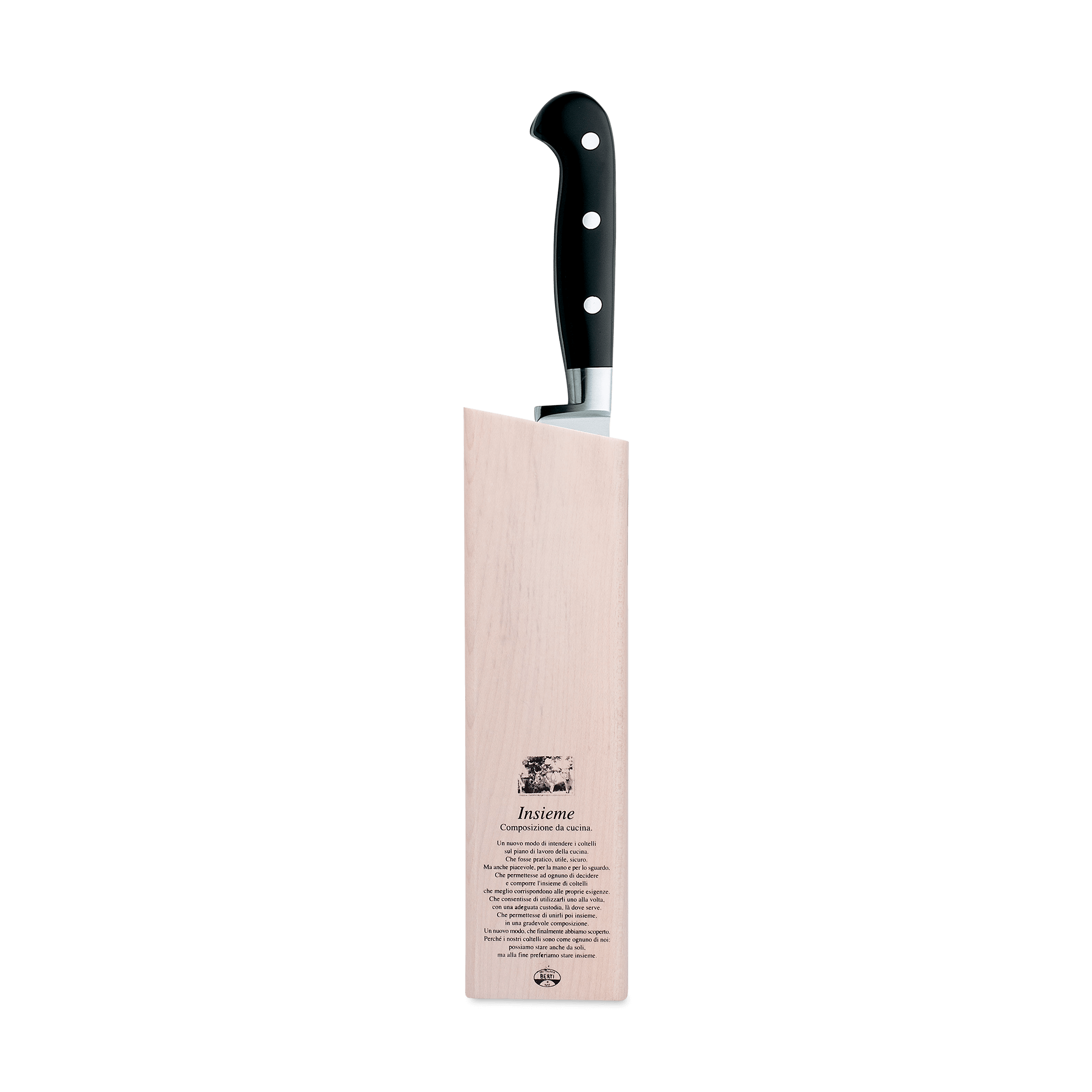 A beautiful marriage of form and function, the Berti slicing knife features a forged, full tang steel blade and a Lucite handle. Available with our without a block. Part of the "Insieme" system, it comes secured in a magnetized wood block that interlocks with the rest of the collection for your own customizable storage system.