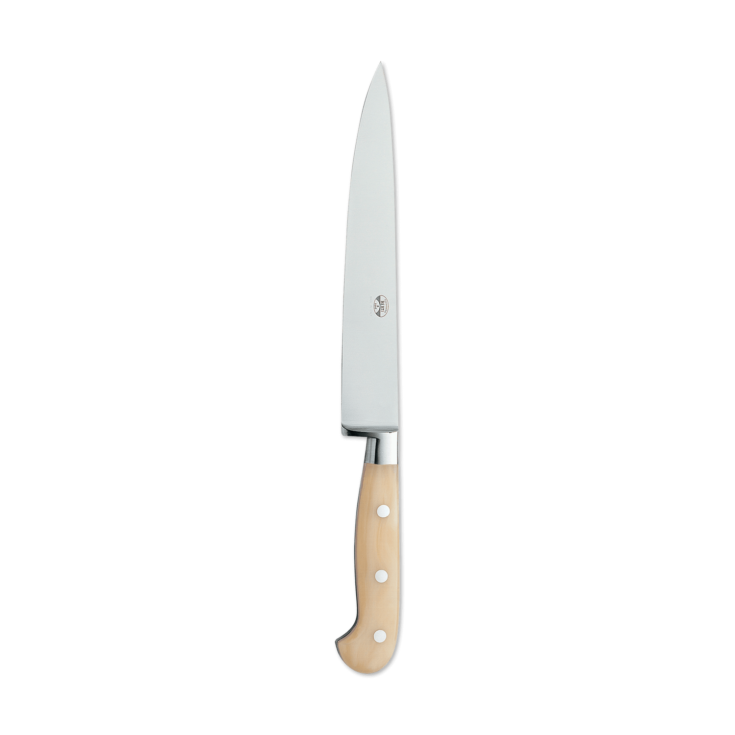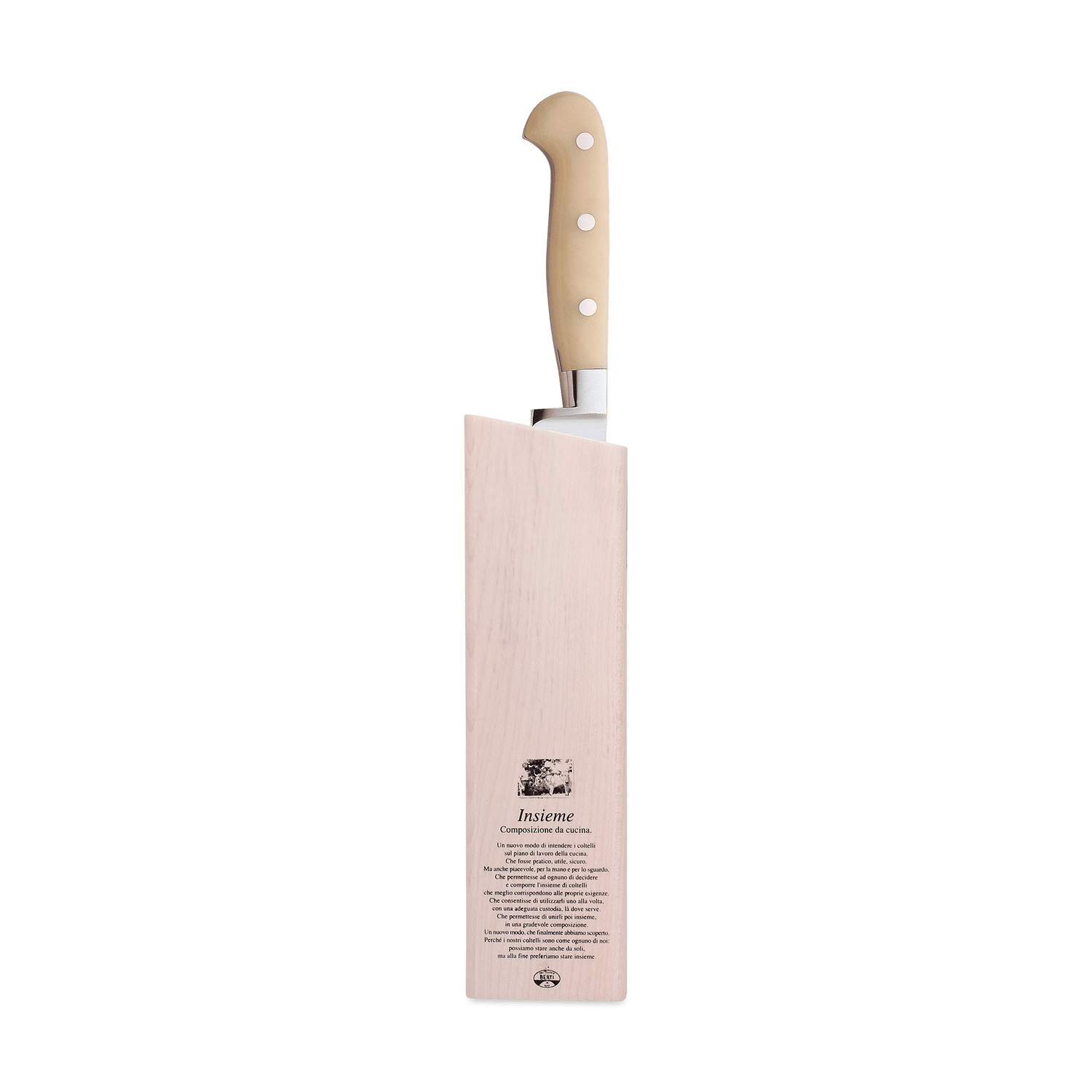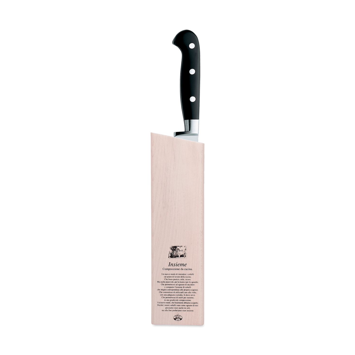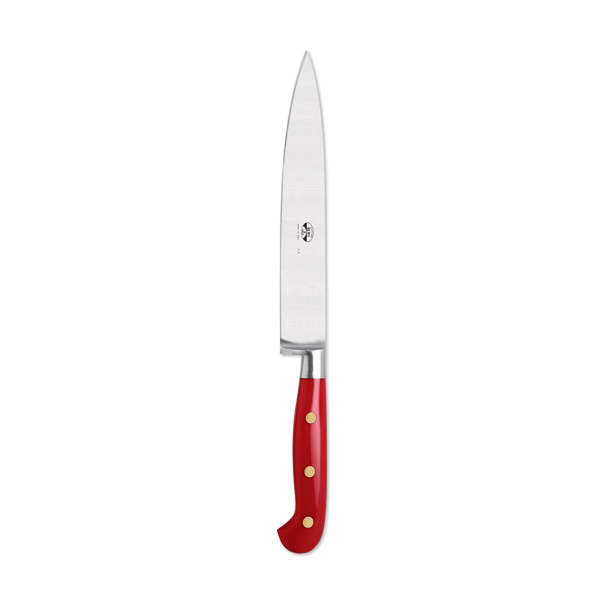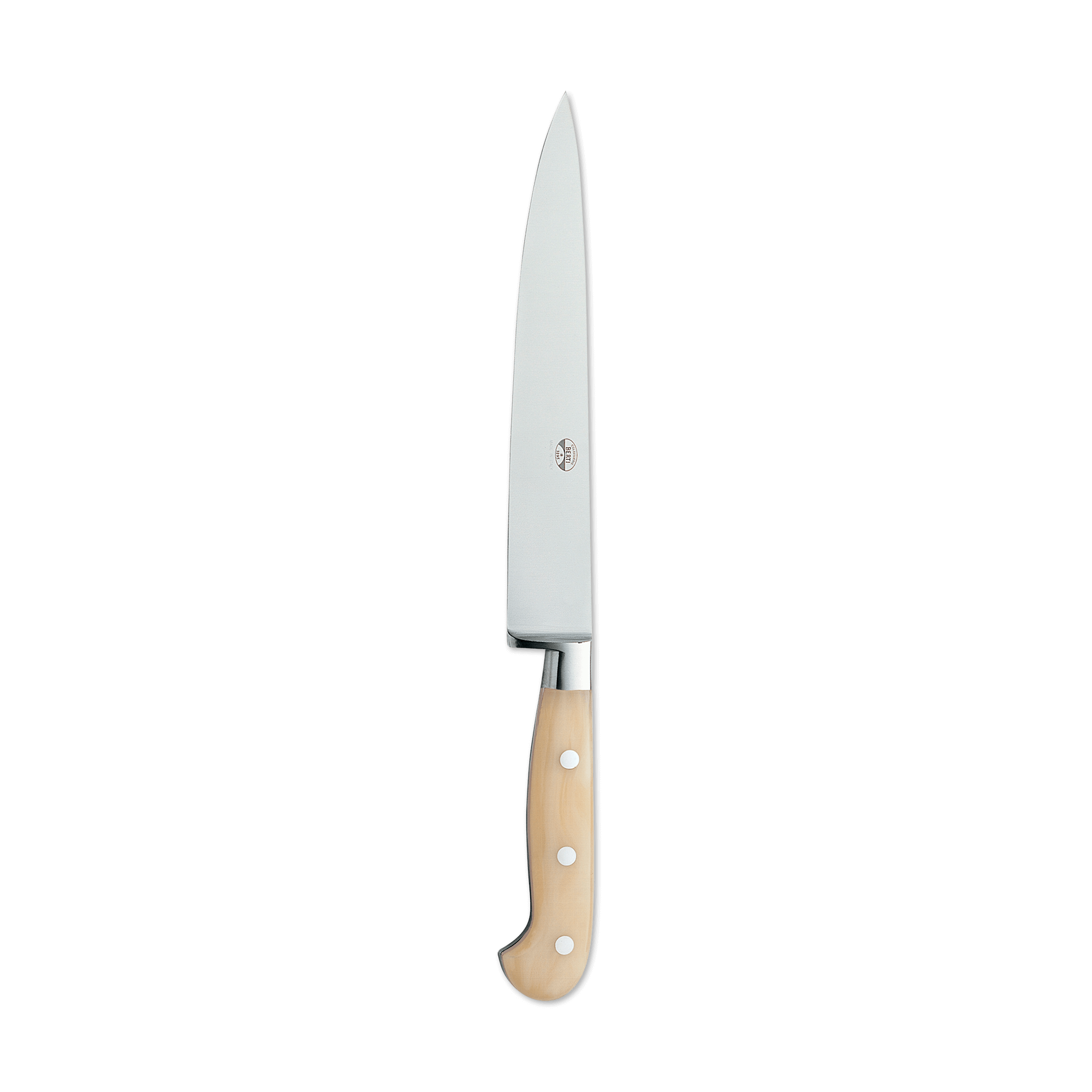 A beautiful marriage of form and function, the Berti slicing knife features a forged, full tang steel blade and a Lucite handle. Available with our without a block. Part of the "Insieme" system, it comes secured in a magnetized wood block that interlocks with the rest of the collection for your own customizable storage system.