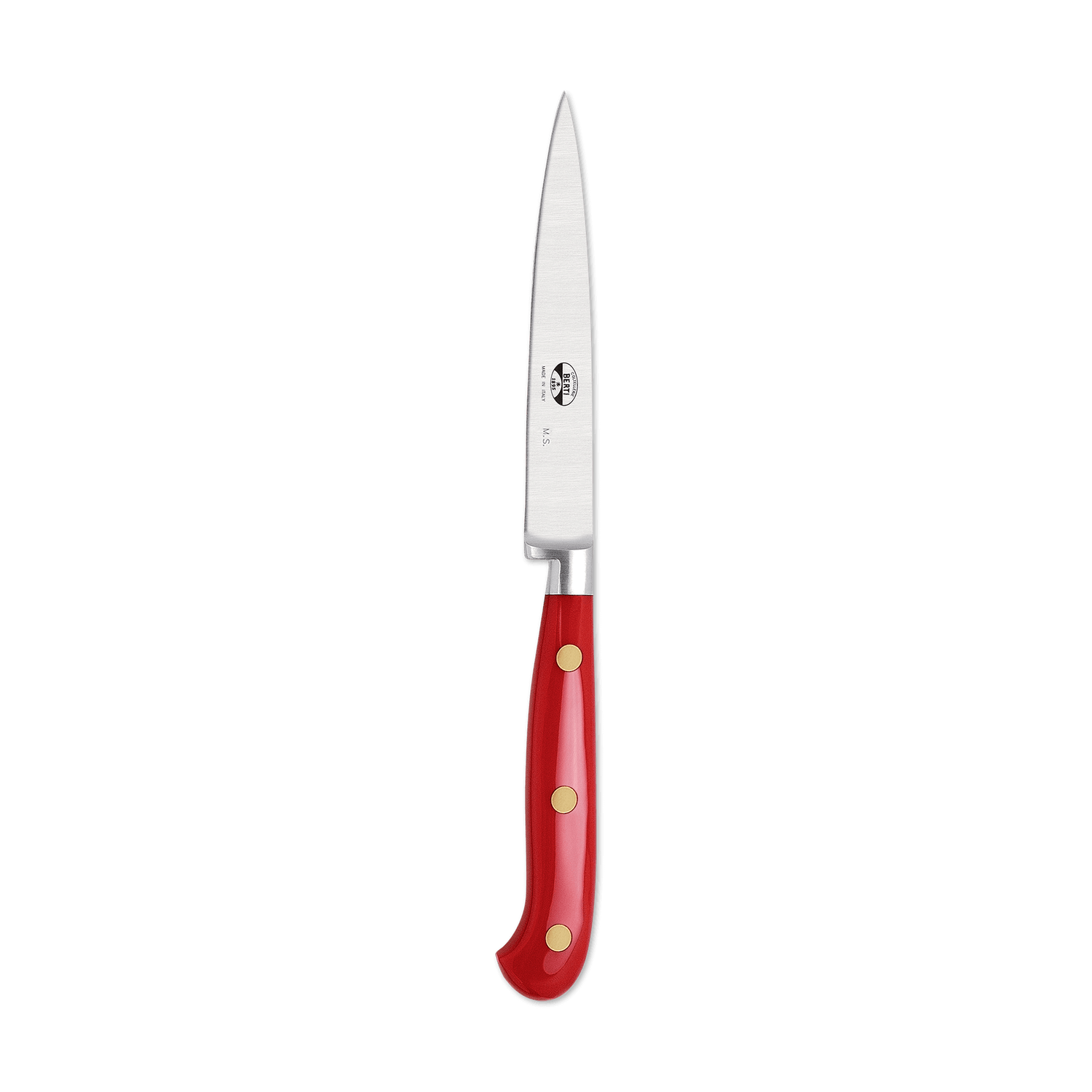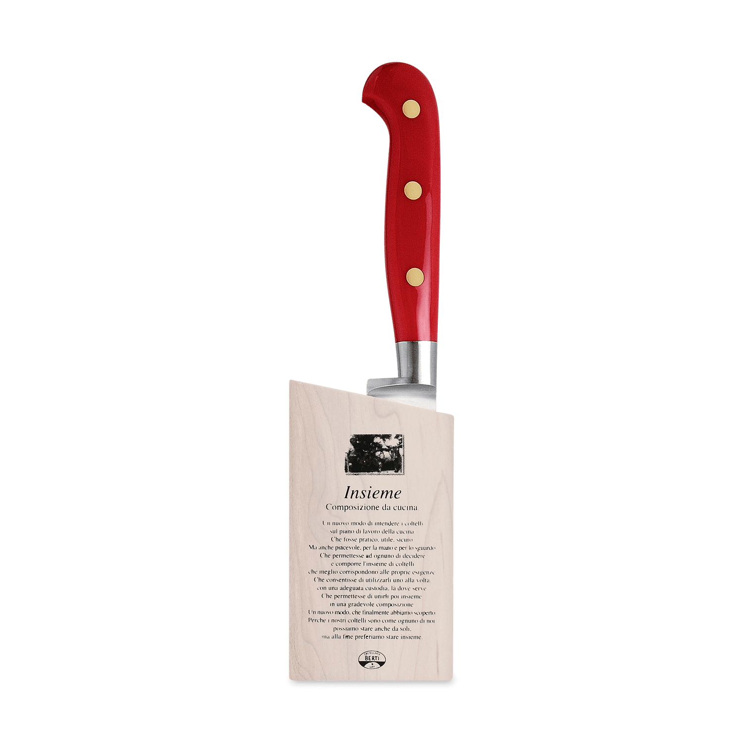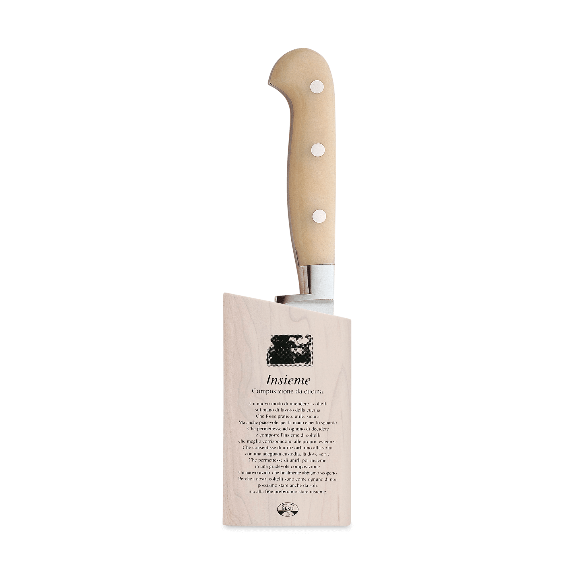 A beautiful marriage of form and function, the Berti straight paring knife features a forged, full tang steel blade and a Lucite handle. Available with or without a magnetized wood block. Part of the "Insieme" system, it comes secured in a magnetized wood block that interlocks with the rest of the collection for your own customizable storage system.