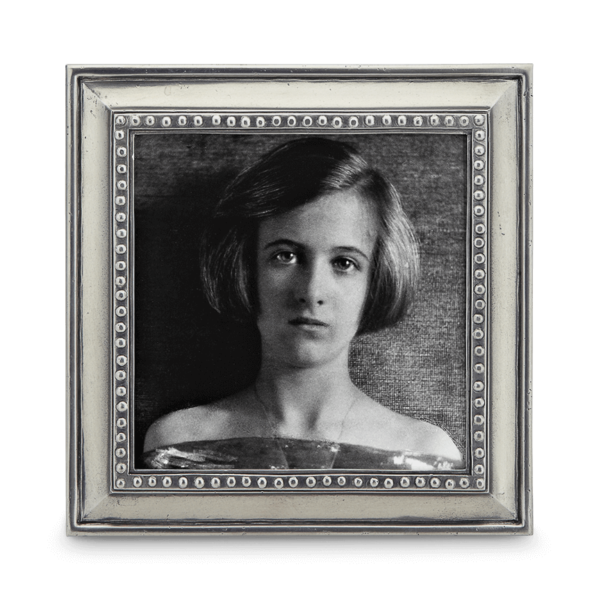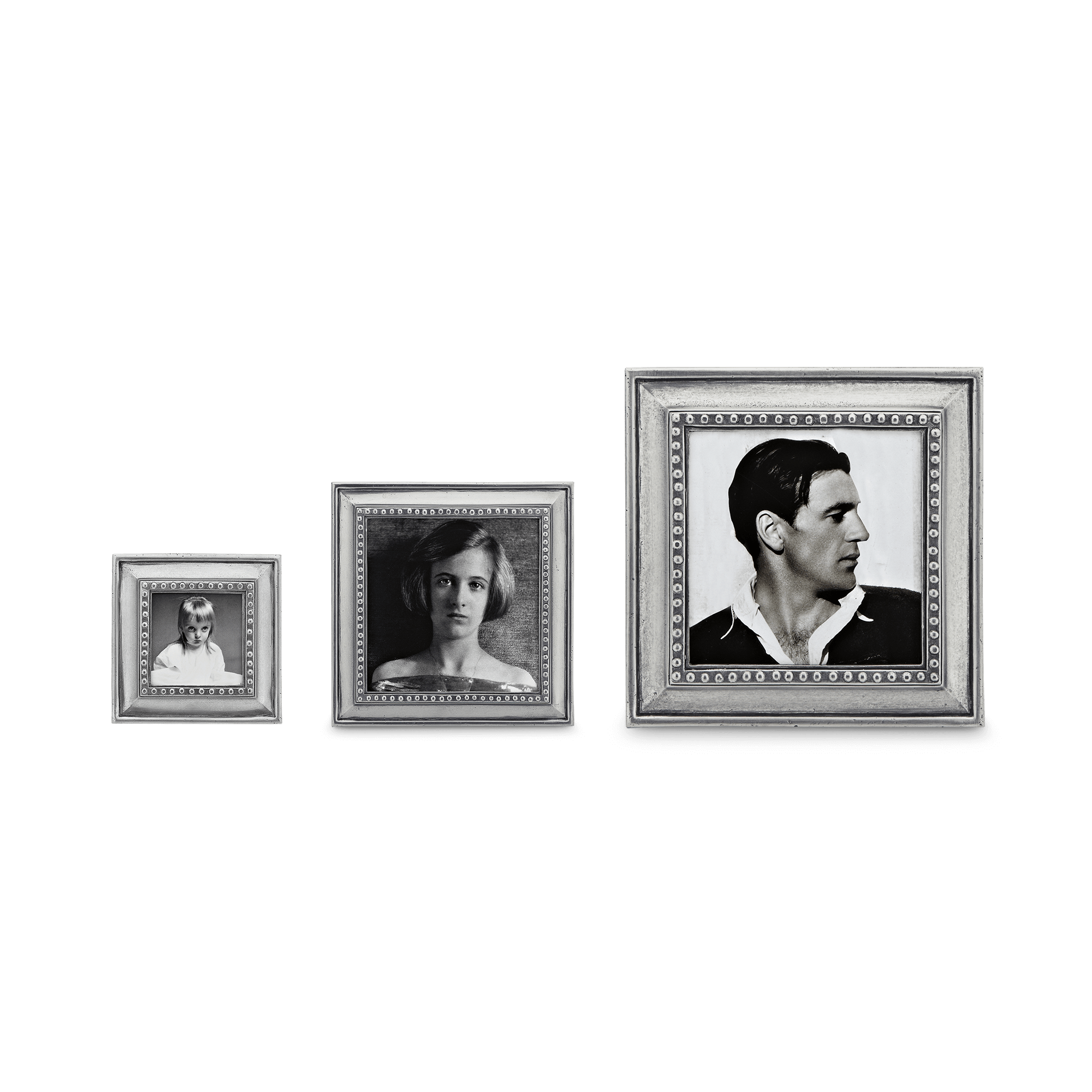 One of our more decorative styles, Veneto square pewter frames feature prominent beading which acts to visually bring the image forward. All finished with a handsome wood backing. We’re fans of frames as gifts, especially when personalized with your choice of monogram, message or memorable date.