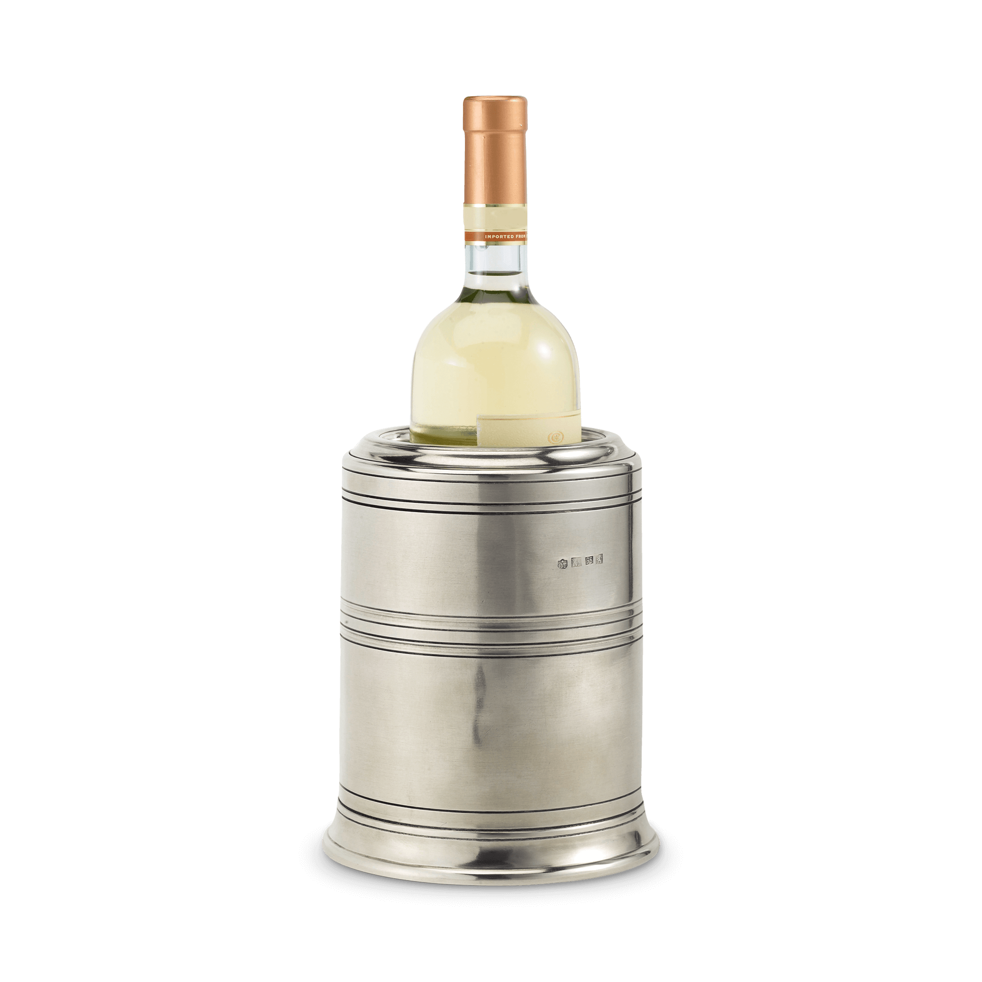 Our handsome all-pewter wine cooler will keep your favorite white or rosé chilled for up to four hours. The secret is a non-toxic, water-based gel freezer insert, which should be frozen for 4-6 hours before use for best results. For longer gatherings we recommend having a spare insert in your freezer (can be purchased individually).