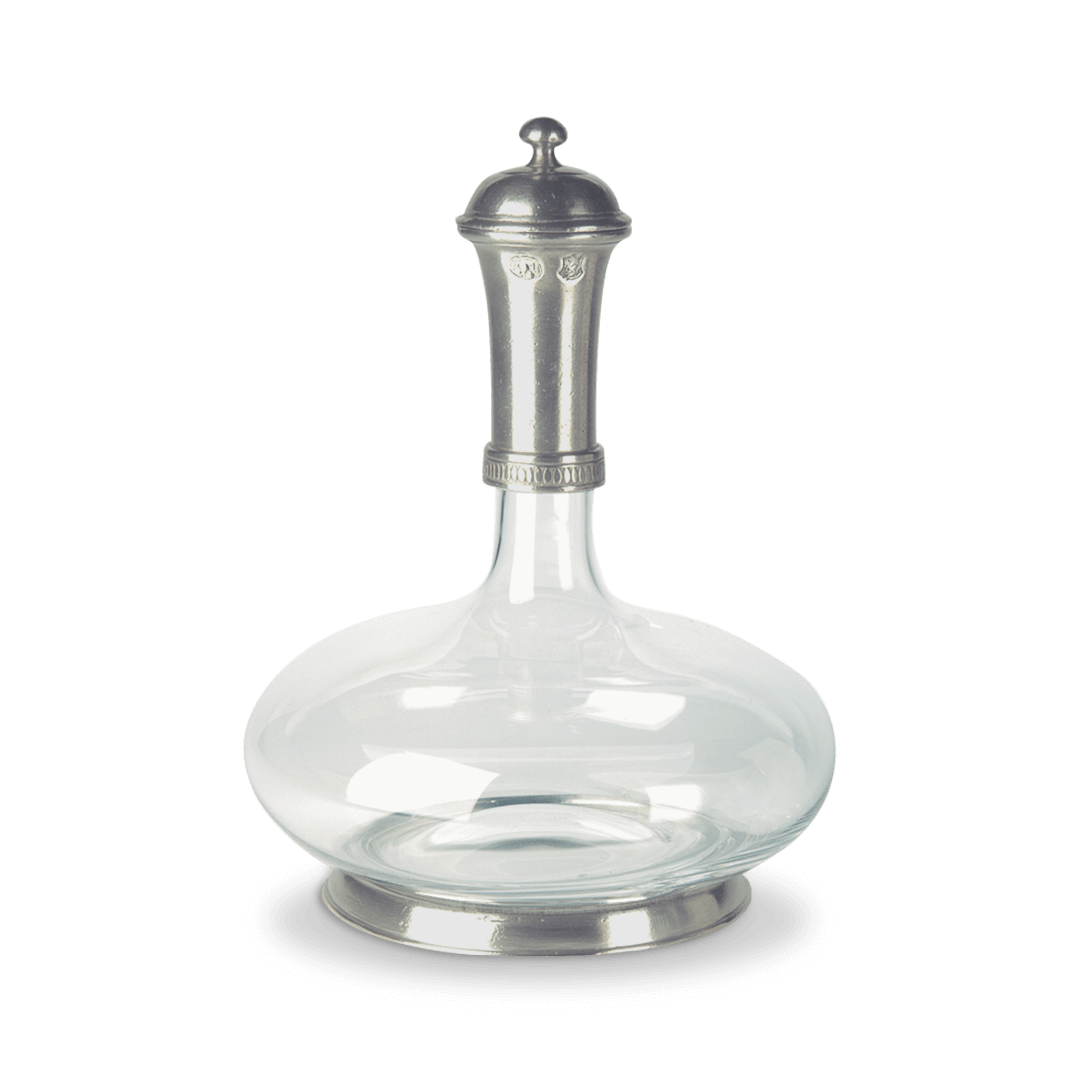 A truly elegant way to allow an amazing red wine to express all of its finer qualities. Made by hand from lead-free European crystal and Italian pewter, and designed with an extra wide base for maximal aeration. This eye-catching decanter will enhance the aromas and flavors of your favorite vintages.