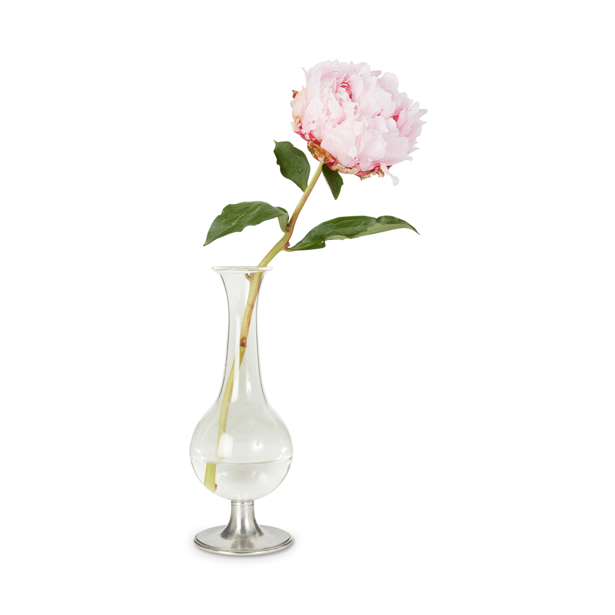 This wonderful pewter footed glass bud vase is inspired by a similar all-pewter style, but rendered in lead-free European crystal with a petite pewter pedestal base. This versatile design is perfect to hold a single stem, and can be placed by itself on a bedside table or in a row down a dining table or bar. It effortlessly mingles with our other vase styles, and makes a sweet and thoughtful gift.